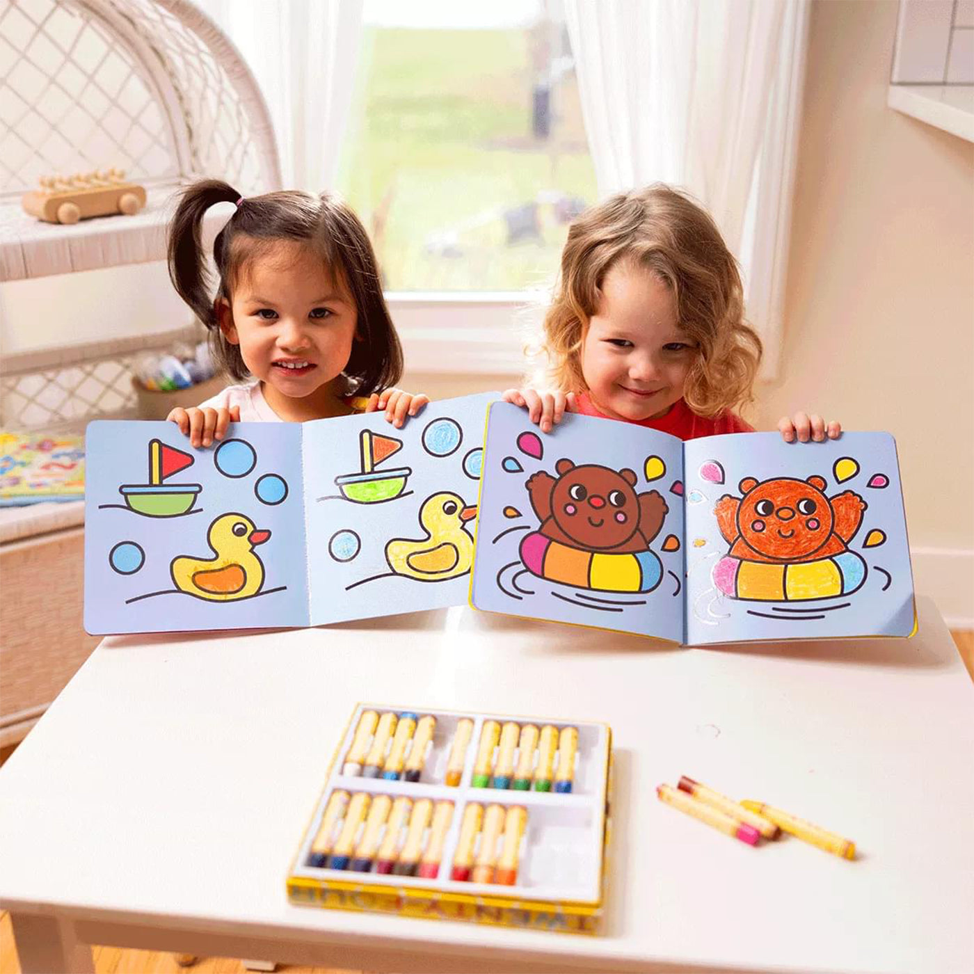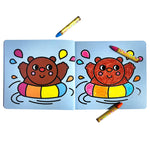 Boyama sanatı eğlenceli bir öğrenme deneyimine dönüşüyor! Bu dokunsal boyama kitabı, çocuklara renklendirme yaparken onlara kolaylık sağlayacak siyah çizgi gibi akıllı eğitici özelliklerin yanı sıra her sayfanın yanında tam renkli kılavuzlu bir çalışma kitabı da içeriyor. Şnorkelle dalış yapan bir tavşan, gülümseyen bir kumdan kale ve göz kırpan bir kamera gibi sevimli pasta resimleriyle bu 18 sayfalık büyülü kitap çocukları kesinlikle mutlu edecek!