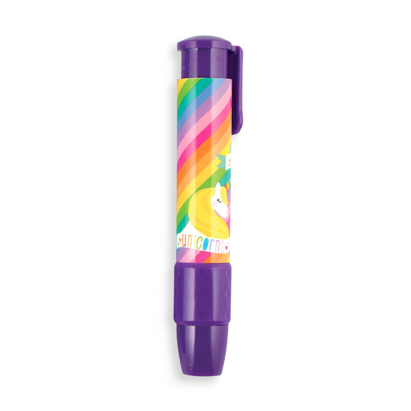 Tek boynuzlu at desenli bu silgi, kurşun kalem hatalarını silmenin en basit, en eğlenceli ve en sevimli yolu. Kalem şeklinde plastik koruyucu içinde yer alan silgi, birkaç tıklama hareketiyle kullanıma hazır hale gelir.