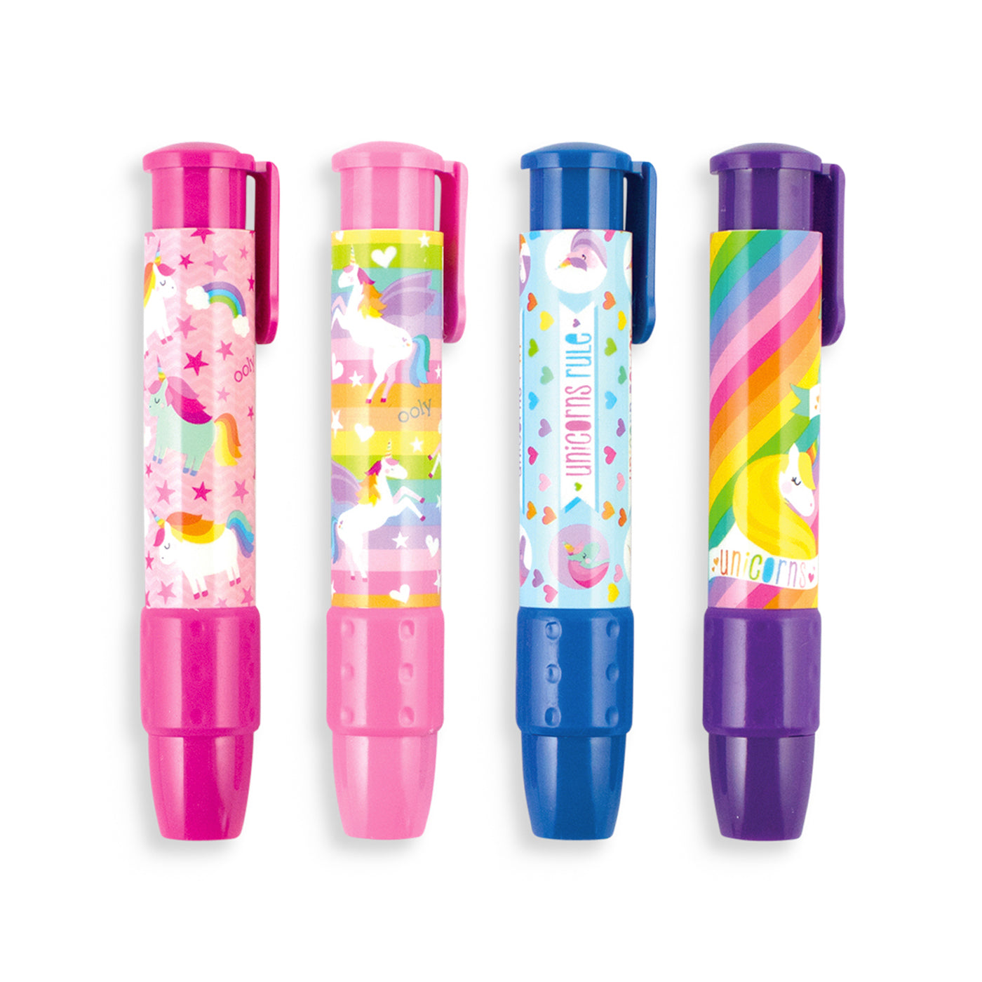 Tek boynuzlu at desenli bu silgi, kurşun kalem hatalarını silmenin en basit, en eğlenceli ve en sevimli yolu. Kalem şeklinde plastik koruyucu içinde yer alan silgi, birkaç tıklama hareketiyle kullanıma hazır hale gelir.