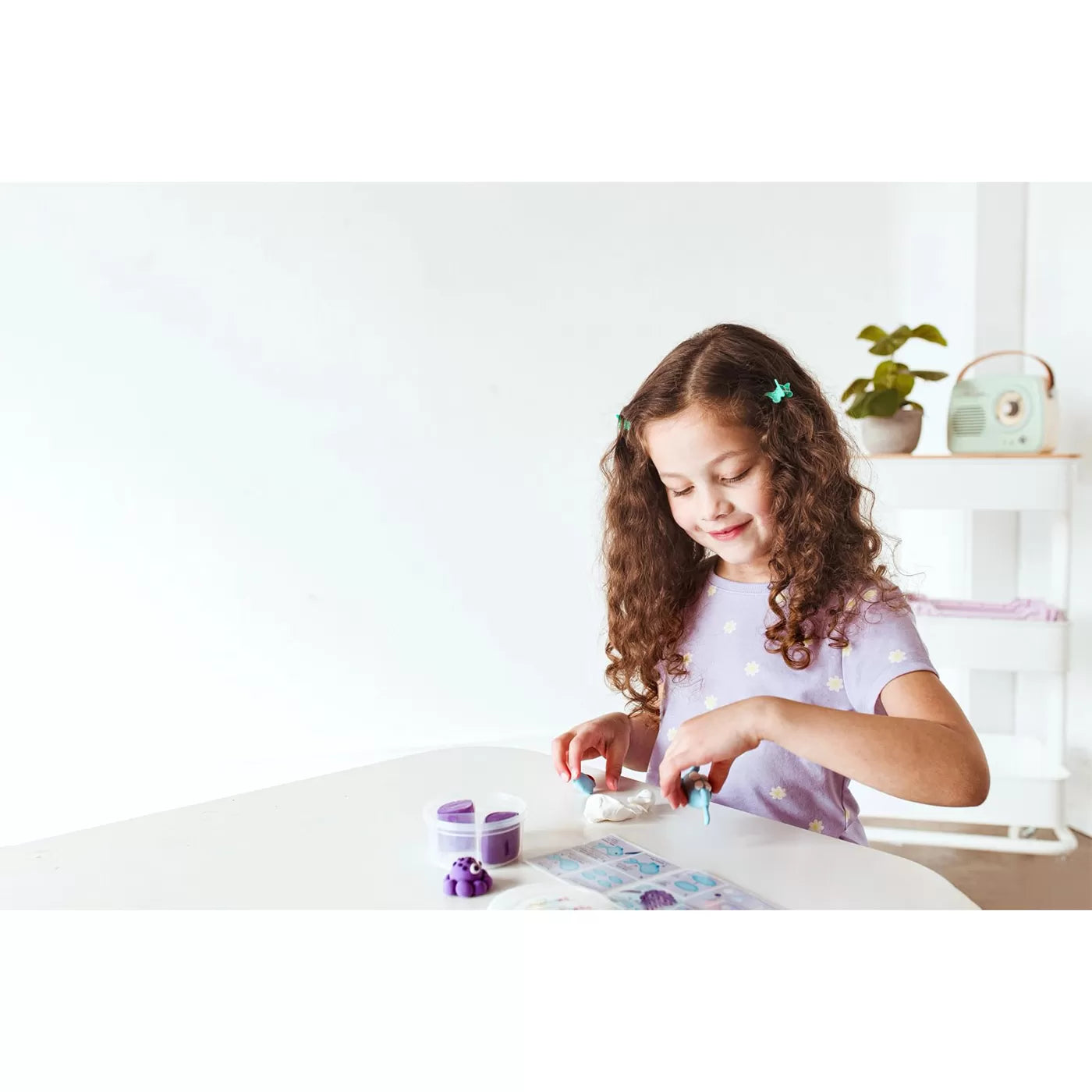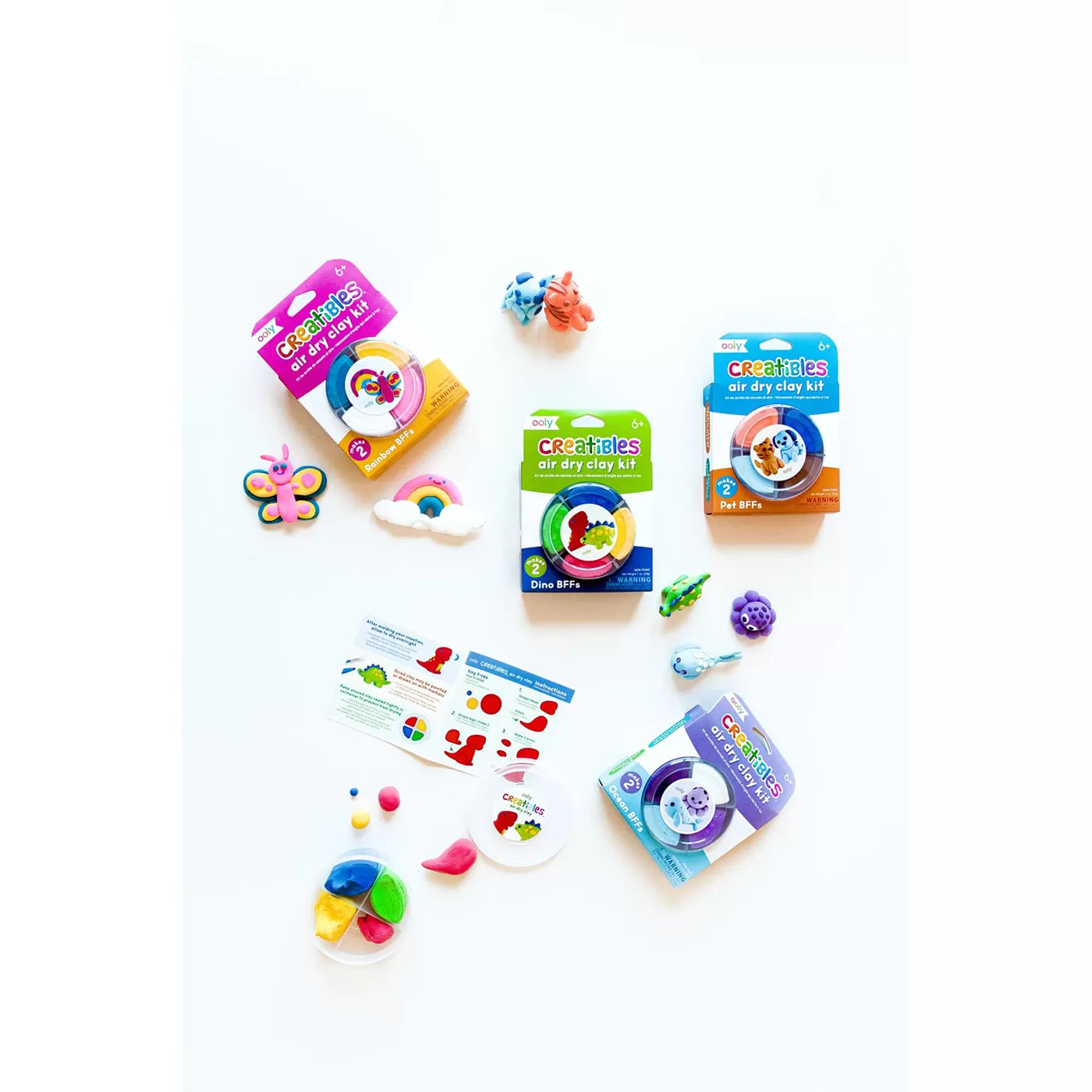 Bu harika mini kil setiyle hayal gücünüzü harekete geçirme ve dostluk temalı figürler yaratma zamanı! Her set, farklı renkte 4 parça kil ve renkli bir kelebek ile gökkuşağı yapmak için gerekli talimatları içerir. Havayla kuruyan bu kil seti, toksik madde içermez ve ekstra yumuşak yapısı sayesinde şekillendirmeyi son derece kolaylaştırır.