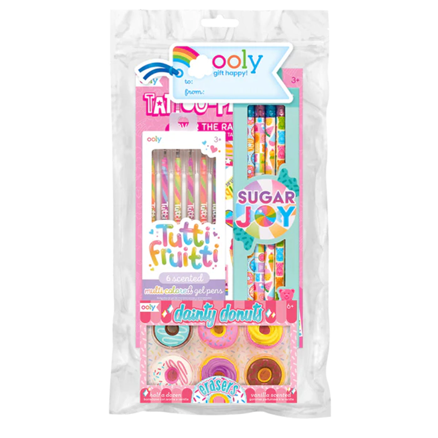 Yaratıcılığı artıran bir set arıyorsanız, bu paket tam size göre! Kurşun kalemlerle yazılar yazın, desenler için; kokulu jel kalemleri kullanarak onları renklendirin... Yazı yazarken hata mı yaptınız? Hiç sorun değil, donut şekillli silgilerle hataları eğlenceli bir şekilde ortadan kaldırın! Rainbow Tattoo Paloora'nın toksik olmayan geçici dövmeleriyle de gününüze eğlence katın!
