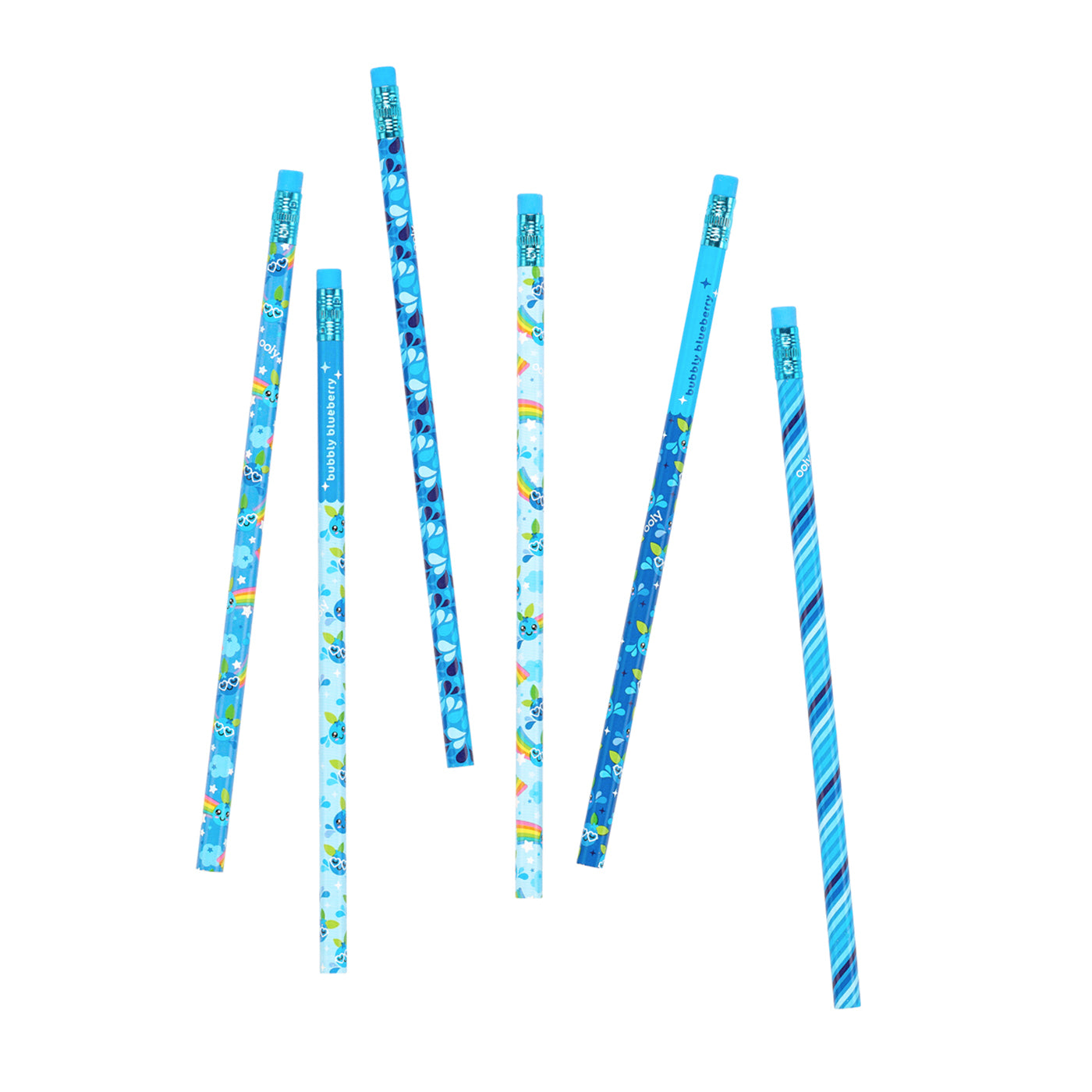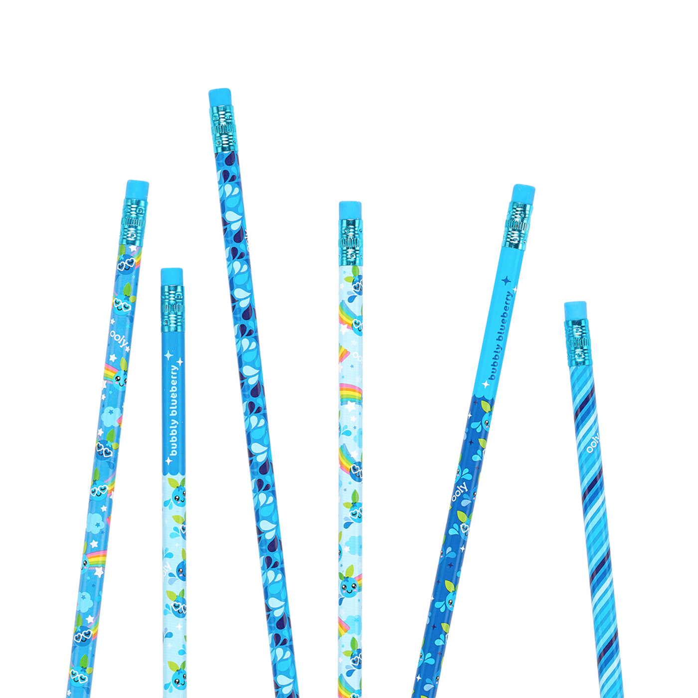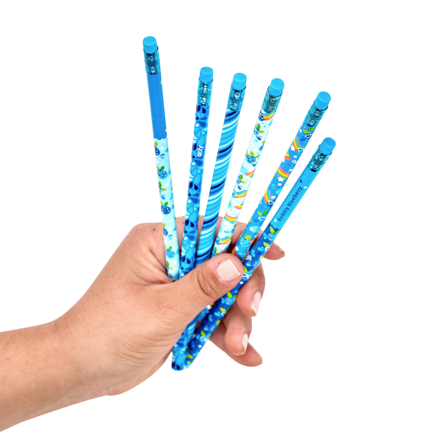 Sevimli yaban mersini desenleri, bu yaban mersini kokulu kalemlerin gövdelerini kaplıyor. 6 adet yaban mersini kokulu kalemin her biri, meyvelerden ilham alan kendi desen ve tasarıma sahiptir.