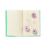 Bu vanilya kokulu donut silgileri ile hatalar mutlu anlara dönüşüyor. Bu yapboz silgileri, üst kısımalarını değiştirmenize ve gülümseyen donut'ları ruh halinize uyacak şekilde karıştırmanıza ve eşleştirmenize izin veriyor!