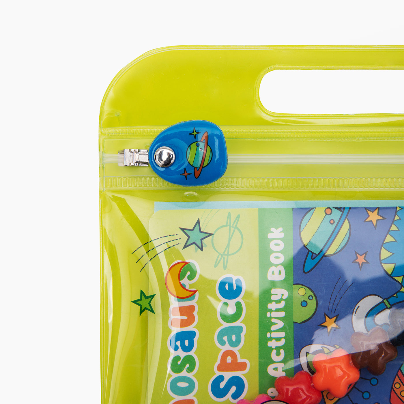 Dinozor temalı boyama ve aktivite seti, küçükleri meşgul etmek için uzay temalı aktiviteler ve süper sevimli dinozorlarla dolu. Boyama, çıkartmalarla oynama, labirentleri çözme, kelime arama, farkı bulma gibi eğlenceli aktiviteleri içeren sette, ayrıca renklendirme sayfaları için boya kalemi de bulunuyor. Seyahatlerinizde kolaylıkla yanınızda taşıyabileceğiniz boyutta olan bu set, kullanım kolaylığı için kullanışlı taşıma çantasıyla geliyor.