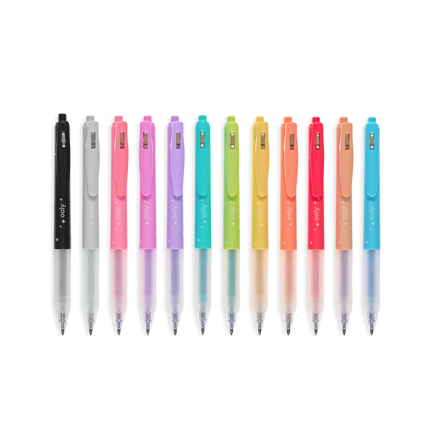 Aralarından seçim yapabileceğiniz 12 farklı renkli parıltılı jel kalemle yazı yazmak asla sıkıcı olmayacak. Geri çekilebilir bir koruyucu içinde yer alan jel kalemler, yumuşak ve konforlu bir tutamağa ve cep klipsine sahiptir. Jel kalem seti, ofisten okula, kişisel planlayıcılardan takvimlere kadar dilediğiniz her yerde kullanmak için uygundur.