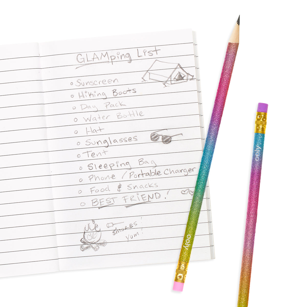 Bu ışıltılı, ombre gökkuşağı renklerindeki kurşun kalemlerle masanızın üzerinde ışıltı saçın. Üstünde göz alıcı simler olan bu kalemlere sadece bakmak bile sizi gülümsetebilir.