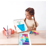 Bu yıkanabilir sulu boya jel boya kalemleri metalik tonlardan oluşan bir gökkuşağıyla parıldıyor. Set, her biri çevirme mekanizmasına sahip, suda çözünen, toksik olmayan 12 boya kalemi içerir. Boyalar azaldığında, daha fazla renk için namluyu çevirmeniz yeterlidir! Sulu boya efekti için ıslak bir boya fırçası ekleyin. Sanat eserinizin parıldamasına ve yaratıcılığınızın parlamasına izin verin!