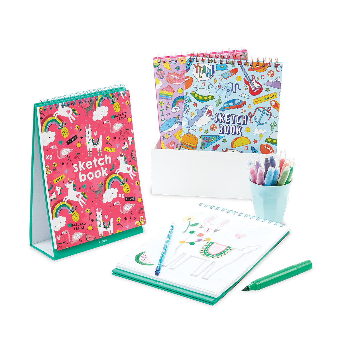 Bu eskiz defteri yerleşik standıyla birlikte gelir, böylece sanat çalışmalarınızı sergilemenize olanak sağlar. 120 g asitsiz beyaz kağıttan üretilen ve renkli kapağı ile dikkat çeken bu defterle çocuklar en renkli hayallerini hayata geçirebilirler.