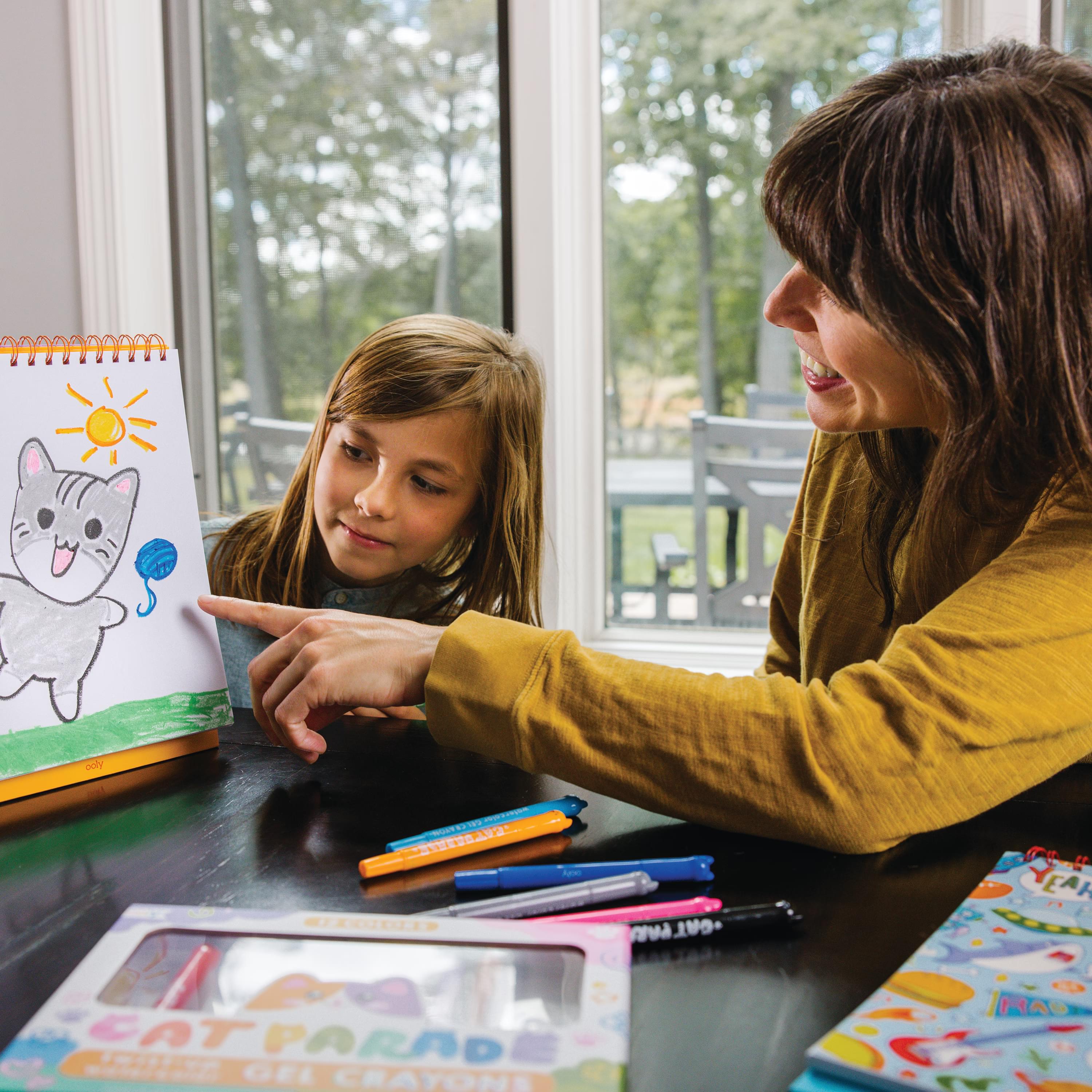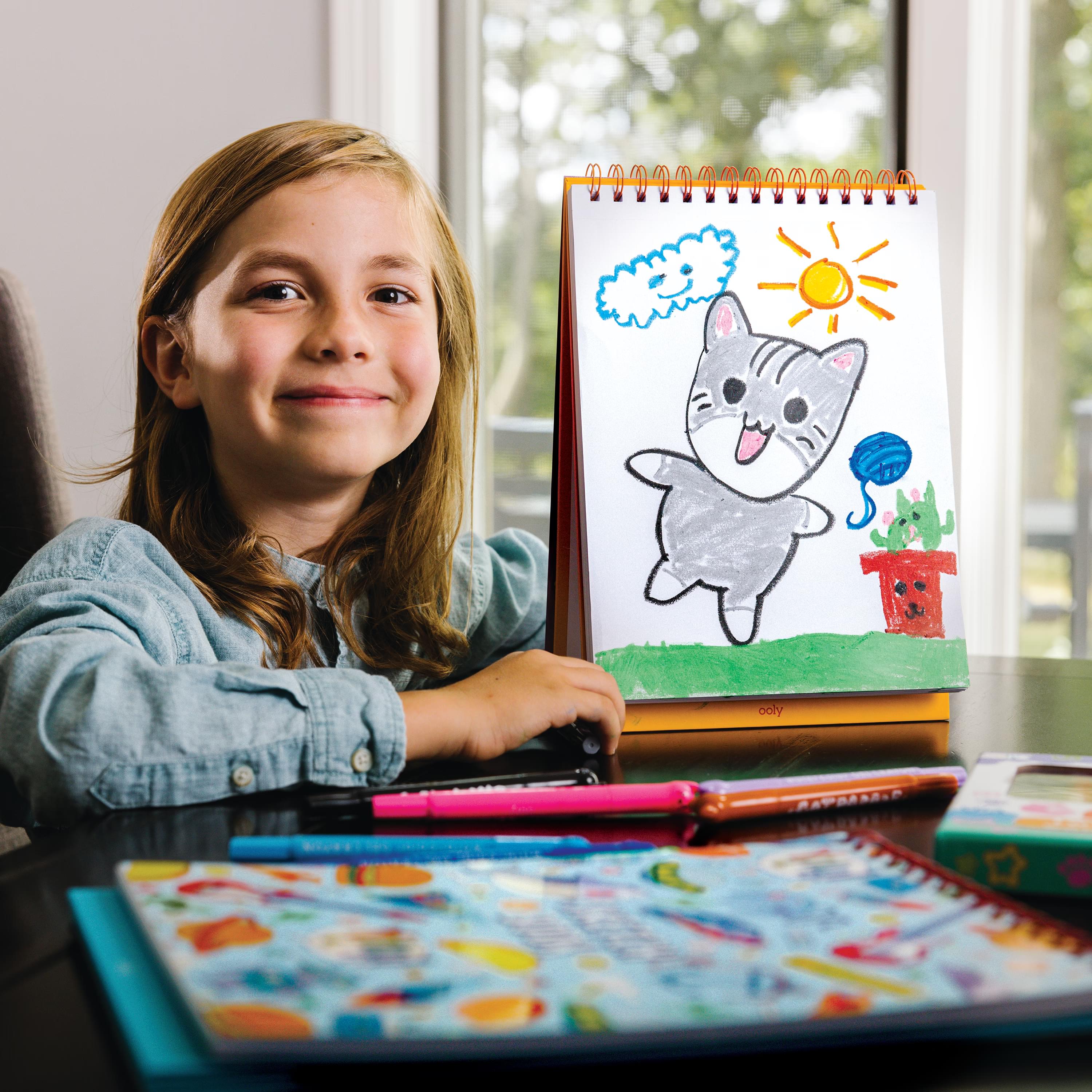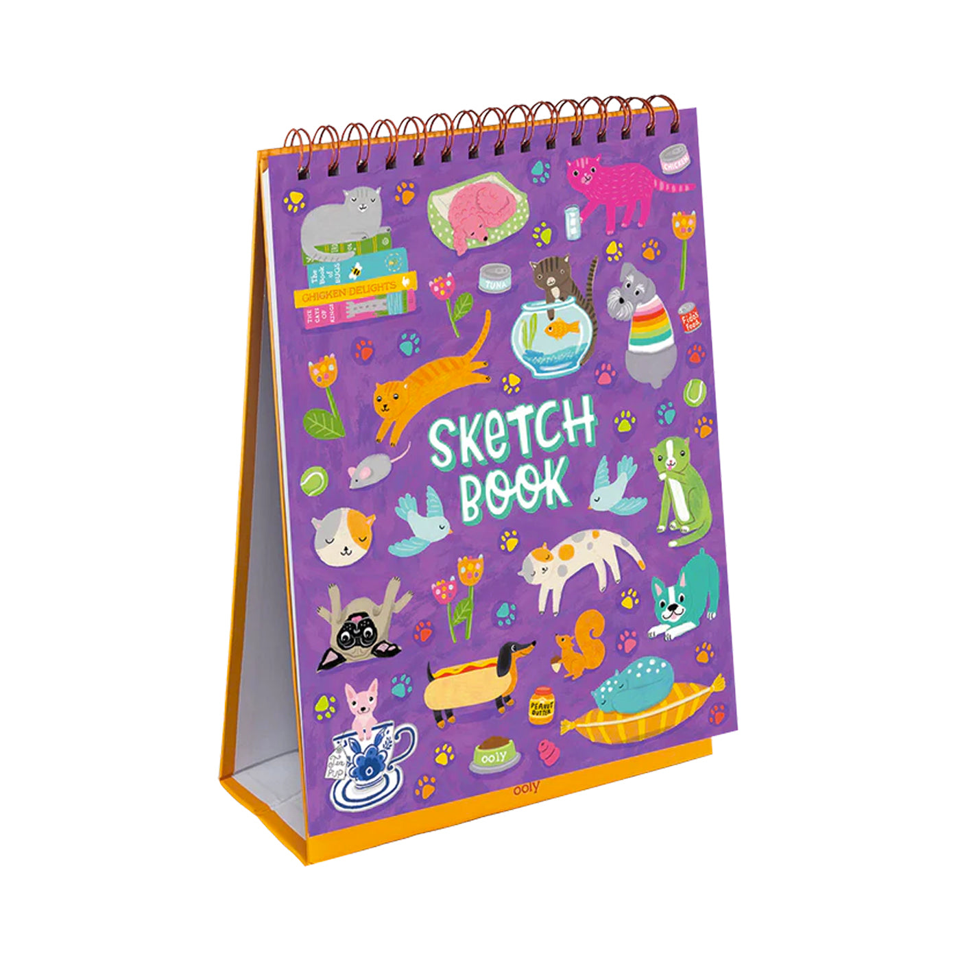 OOLY'nin Sketch and Show ayakta duran eskiz defteri, sadece çizmeyi değil, aynı zamanda eserlerini sergilemeyi sevenler için de mükemmel! Bu eğlenceli sanat pedi, kedileri, köpekleri ve diğer evcil hayvanları içeren, hepsi ışıltılı bir görünüme sahip evcil hayvan oyun teması içerir. Şövale kullanmanıza gerek kalmadan çizim ve boyama yapma imkanı sunar. En sevdiğiniz boya kalemlerini alın ve fikirlerinizi hayata geçirmeye başlayın!