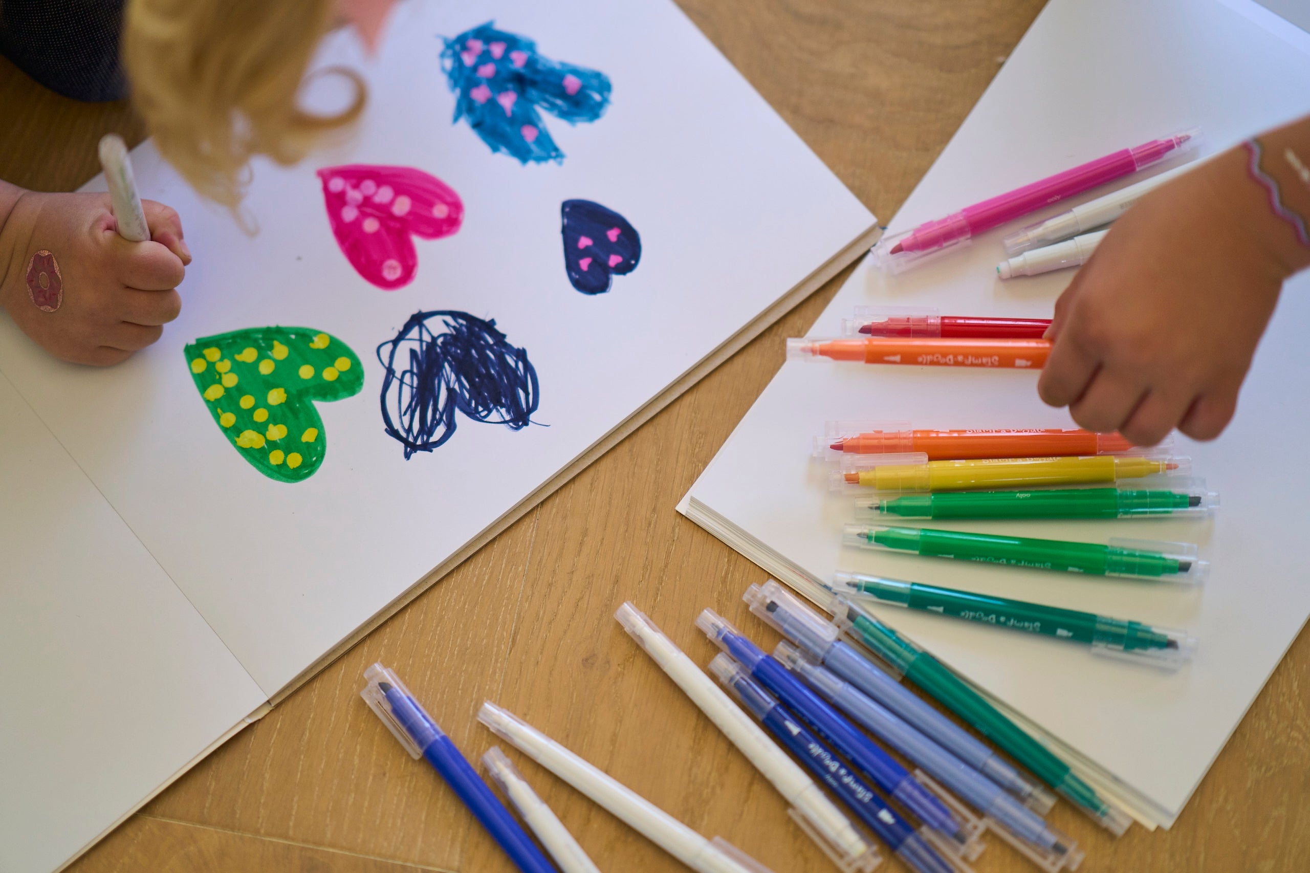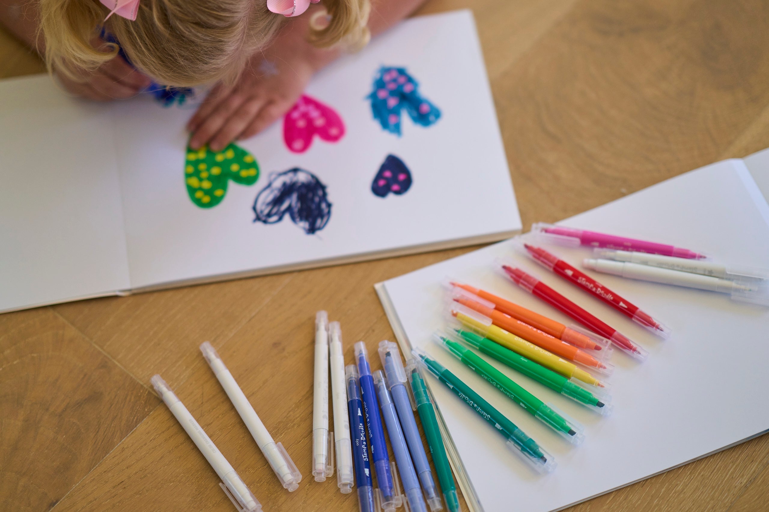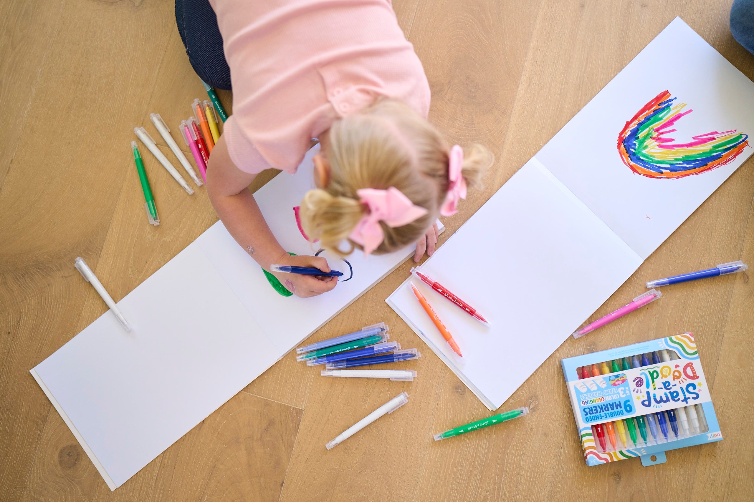 Bu dokuz çift uçlu marker setinin kalemlerinin bir ucu kalın çizimler yapmak idealken, kalemlerin diğer ucu ince ayrıntıları eklemenize olanak sağlar. Set ayrıca renk değiştirici üç marker da içeriyor. Bu marker'ların ise her birinin bir ucunda tatlı bir damga tasarımı da bulunuyor. Kalp şeklini, daireyi veya yıldızı doğrudan çiziminize damgalayabilir ve rengin nasıl değiştiğini keşfedebilirsiniz! (Yetişkin gözetiminde kullanılması önerilir.)