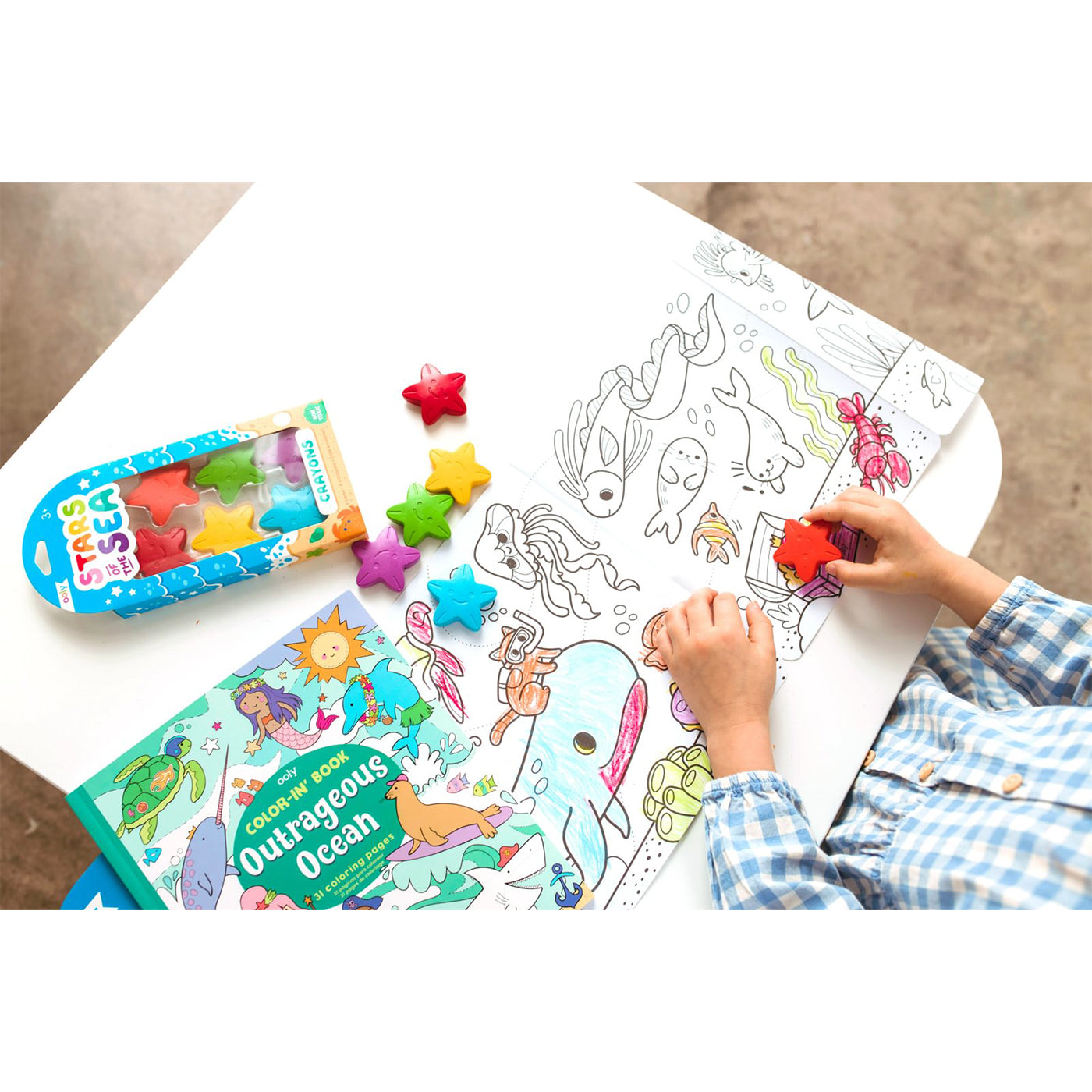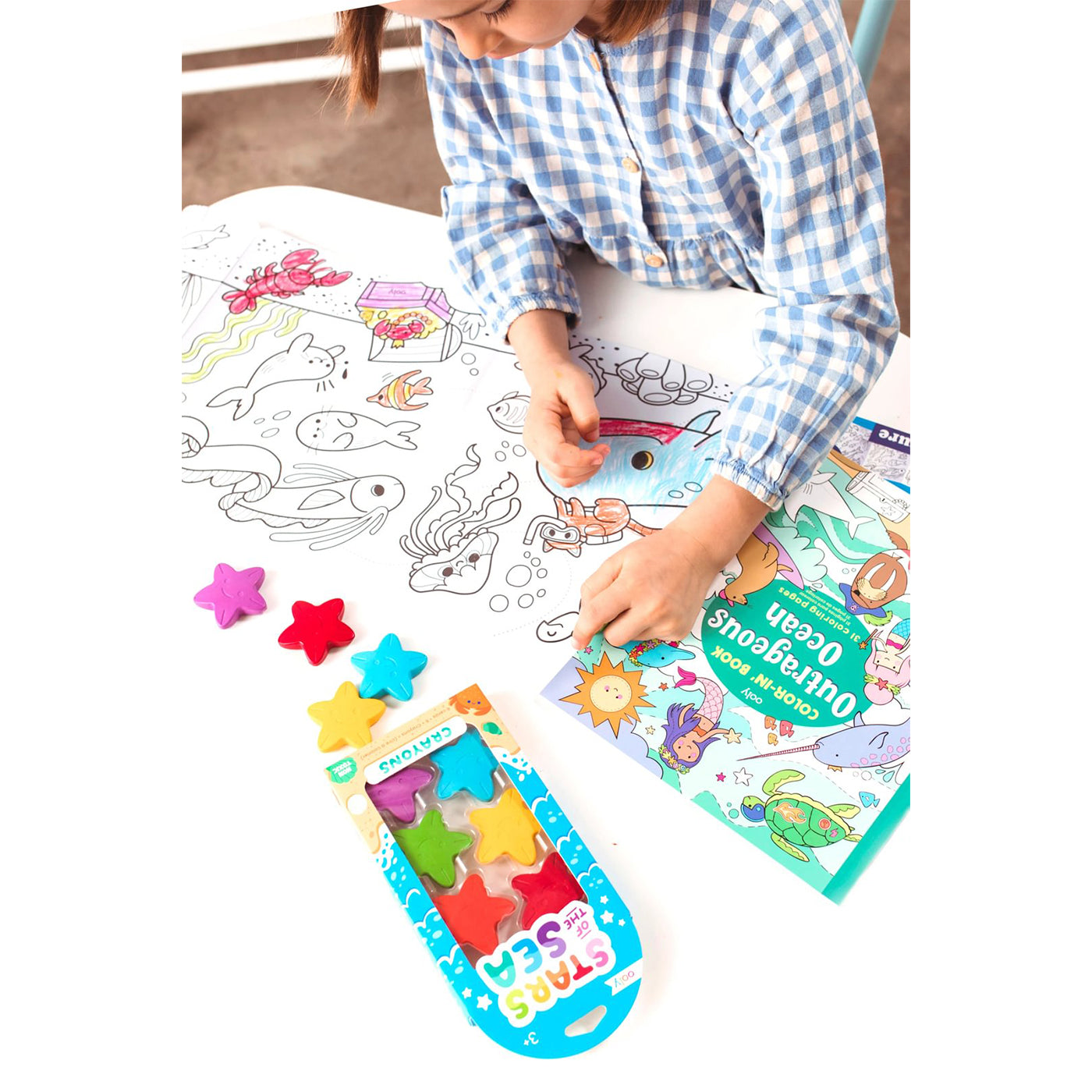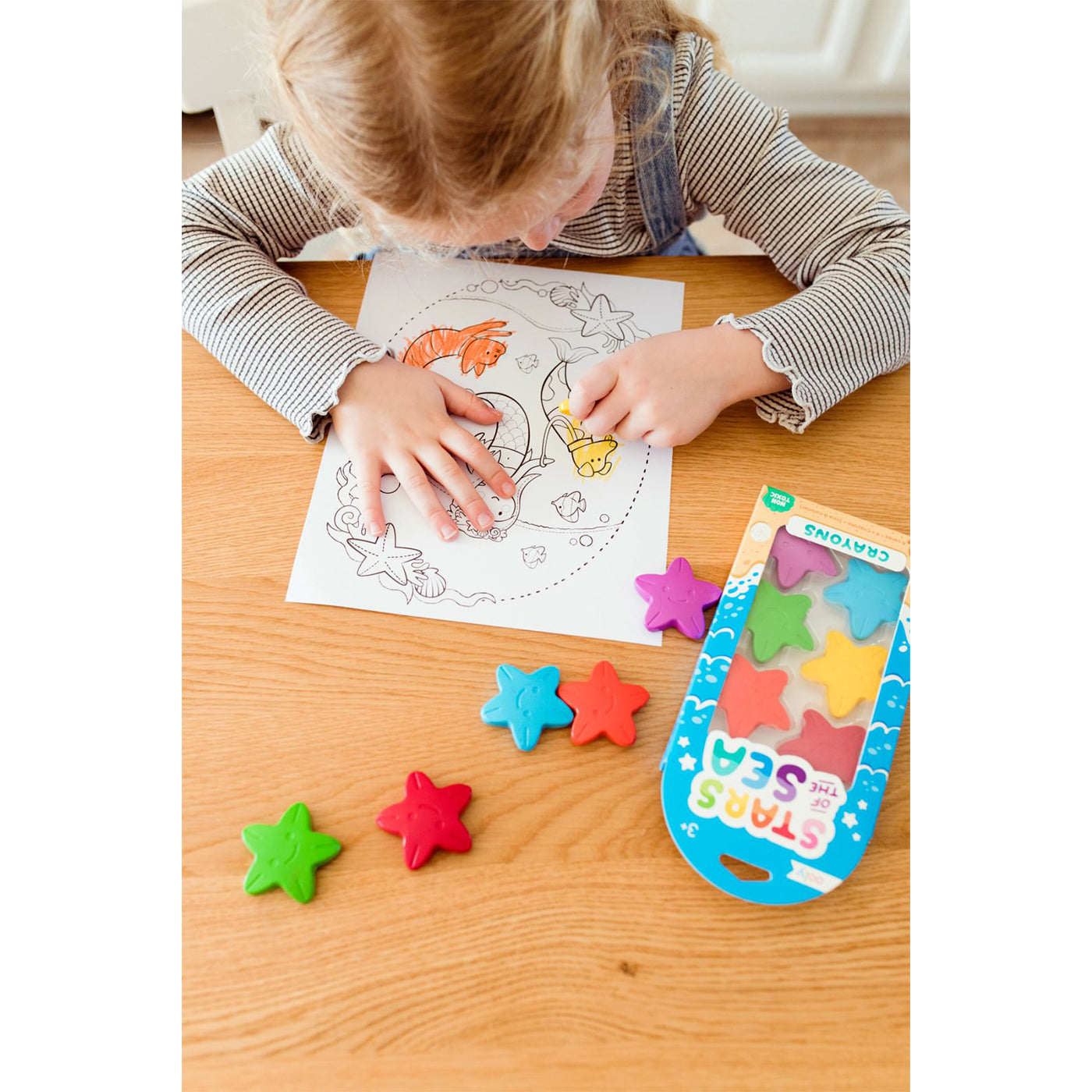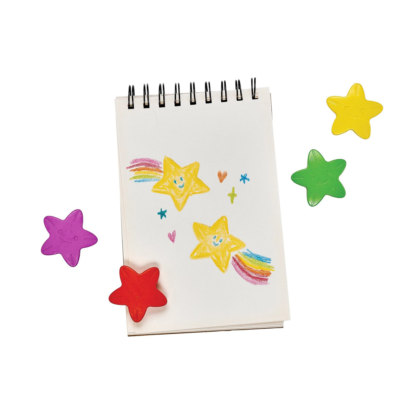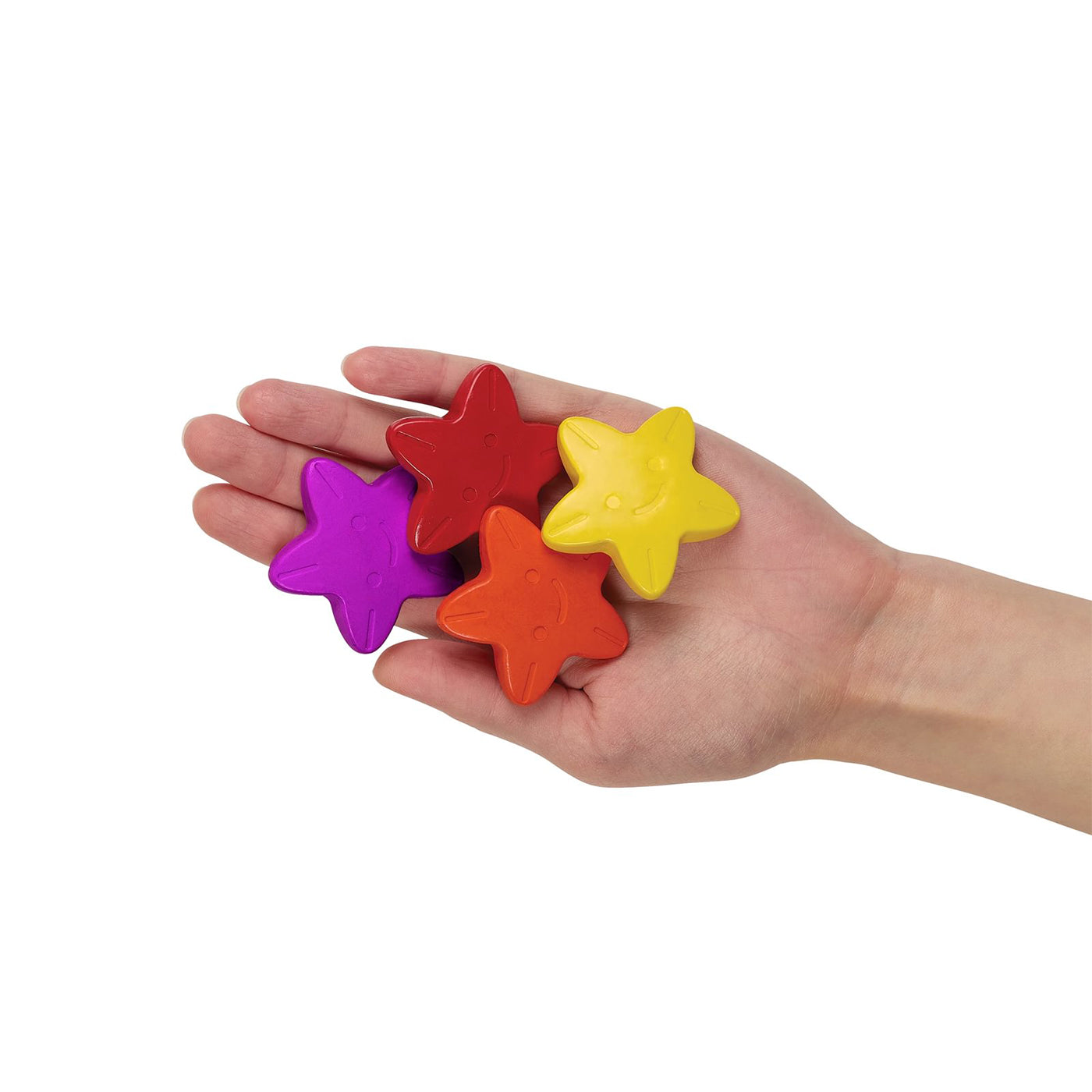 Yıldız şeklindeki bu mum boya kalemi seti kırmızı, turuncu, mavi, yeşil, mor ve sarı gibi parlak renklere ve çocukların kolayca tutabilecekleri bir tasarıma sahiptir.