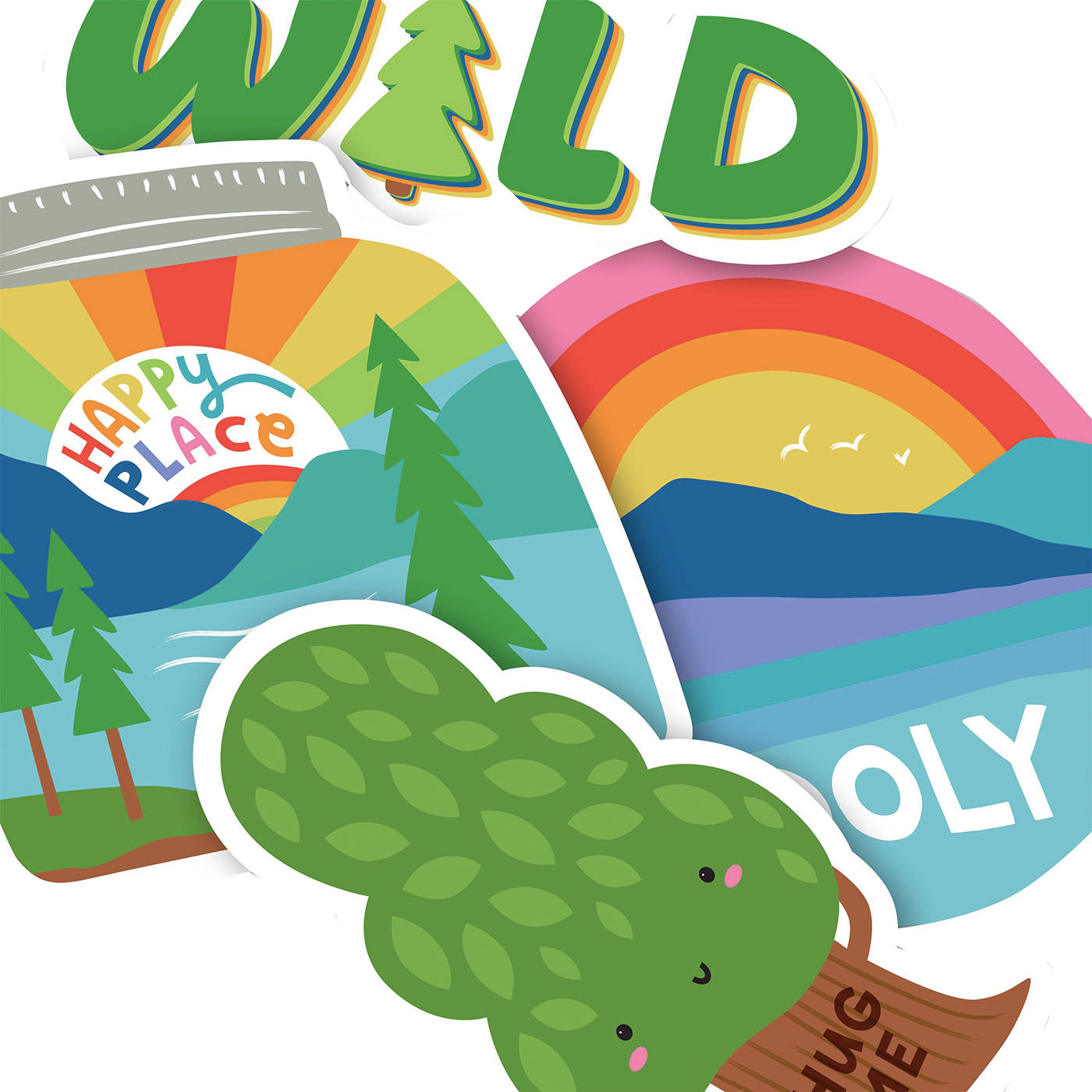 Bu vinil çıkartma paketi doğal dünyayı betimleyen dört vinil çıkartma içeriyor. Tasarımlar arasında ormanlık bir göl, “wild” yazısı, gülümseyen sevimli bir ağaç ve OOLY etiketli bir deniz manzarası yer alıyor. Bu çıkartmalar, özellikle su şişeleri gibi yanınızda taşıyabileceğiniz aksesuarlar için mükemmel.
