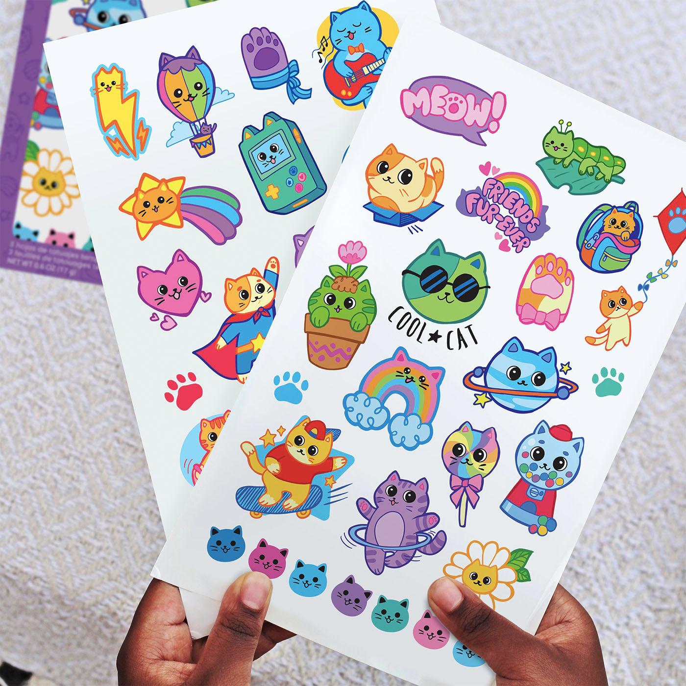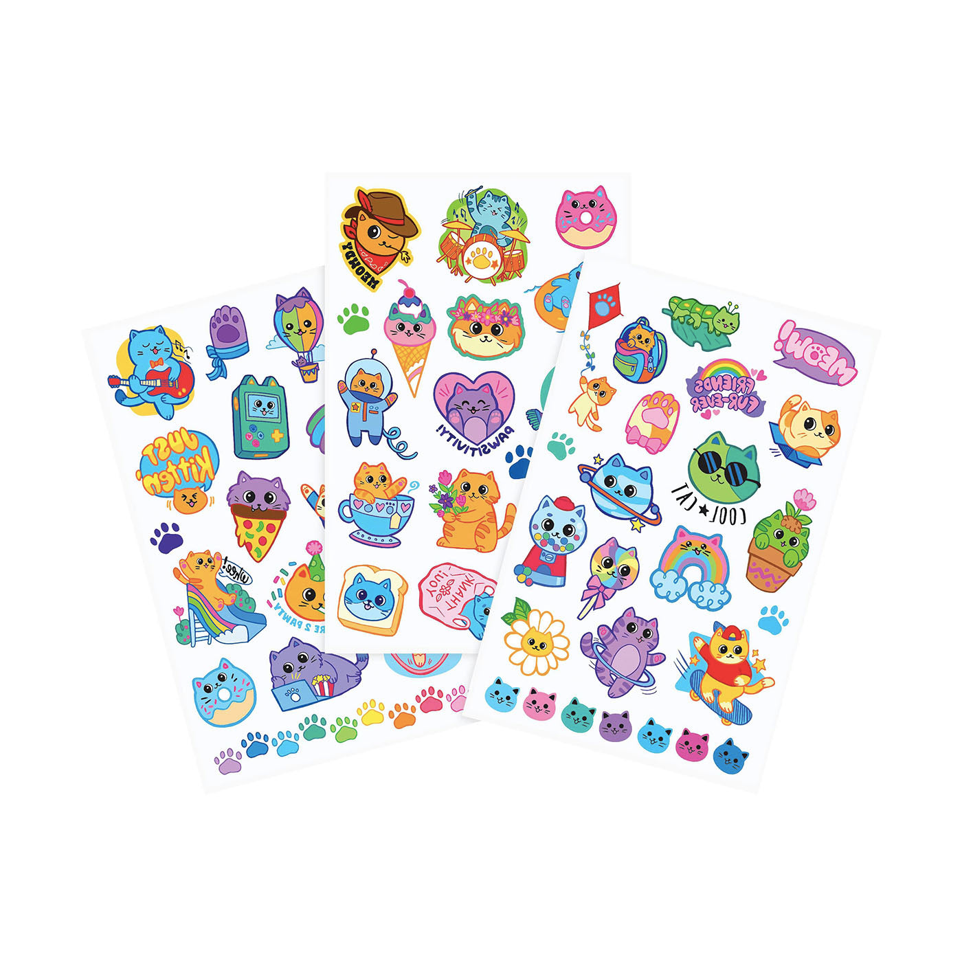 Bu harika geçici dövmeler ile yaratıcılığınızı ve tarzınızı konuşturun. 3 sayfa geçici dövme setinde toplamda 50'den fazla dövme var! Bu dövme seti, sevimli kedilerle dolu. Toksik madde içermeyen geçici dövmelerin uygulanması ve çıkarılması son derece kolaydır. 5 güne kadar dayanabilir. (Yetişkin gözetiminde uygulanması önerilir.)