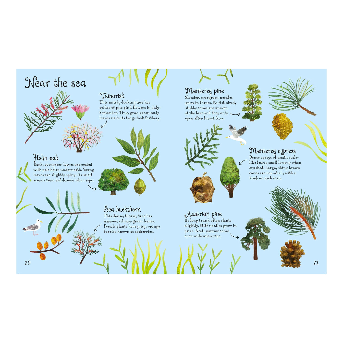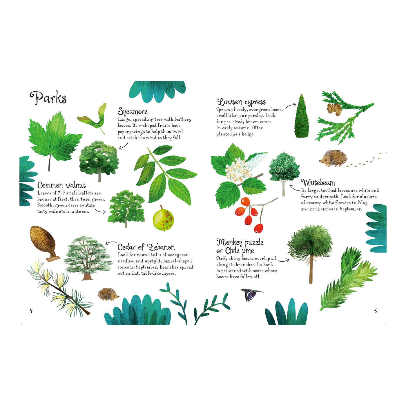 Okuyucular bu güzel küçük kitapla tatlı kestane ve okaliptüsten defne söğütüne ve ardıç ağacına kadar 60 ağacı tanımlayabilirler. Sayfalar, kasaba ve bahçelerde, parklarda, ormanlık alanlarda ve denize yakın yerlerde bulabileceğiniz ağaçları gösterecek şekilde konuma göre düzenlenmiştir. Ayrıca tespit ettiğiniz ağaçları takip edebilmeniz için bir tespit çizelgesi ve çıkartmalar da bulunmaktadır.