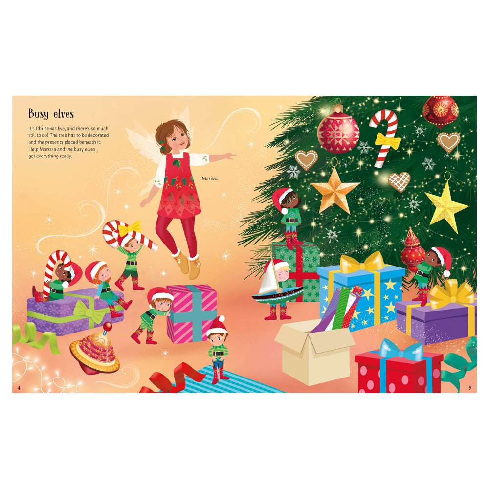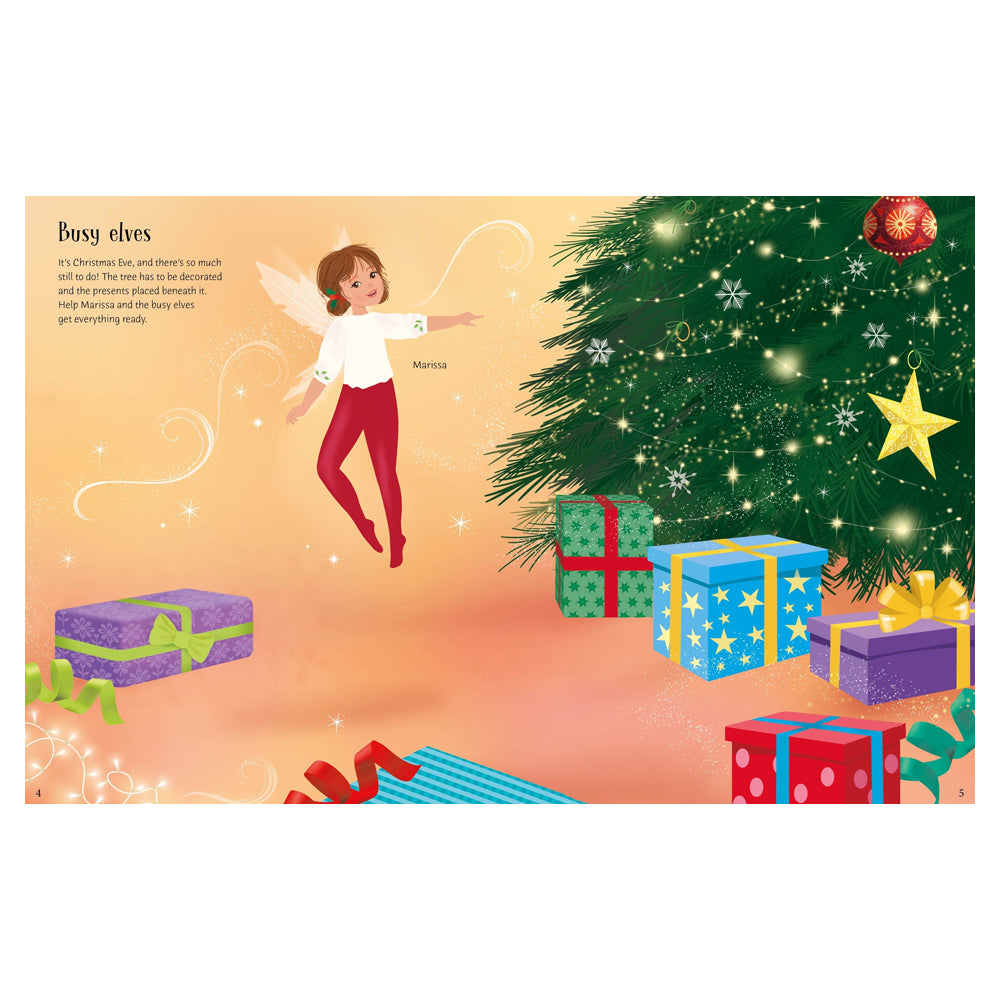 Sticker Dolly Dressing Christmas Fairies, çocukların peri karakterlerini sticker’larla giydirip Noel zamanı sihirli bir kış dünyası yaratabilecekleri eğlenceli bir sticker-aktivite kitabı. Kitapta, periler yılbaşı ağacını süslerken, buz üstünde kayarken ya da kış fırtınasında kar taneleri arasında uçarken giydirilebilir; bu sayede çocukların hayal gücü ve el-göz koordinasyonu gelişir.