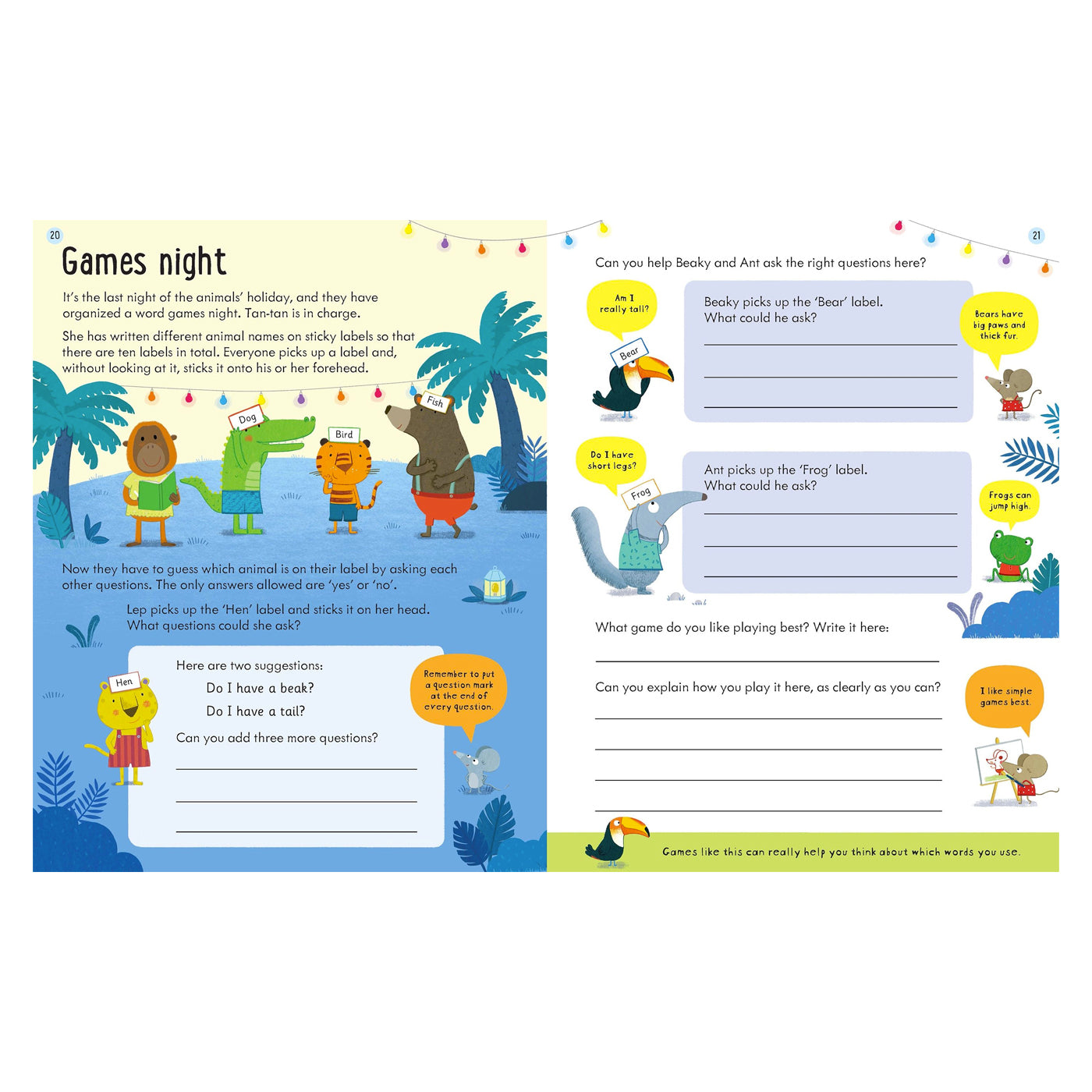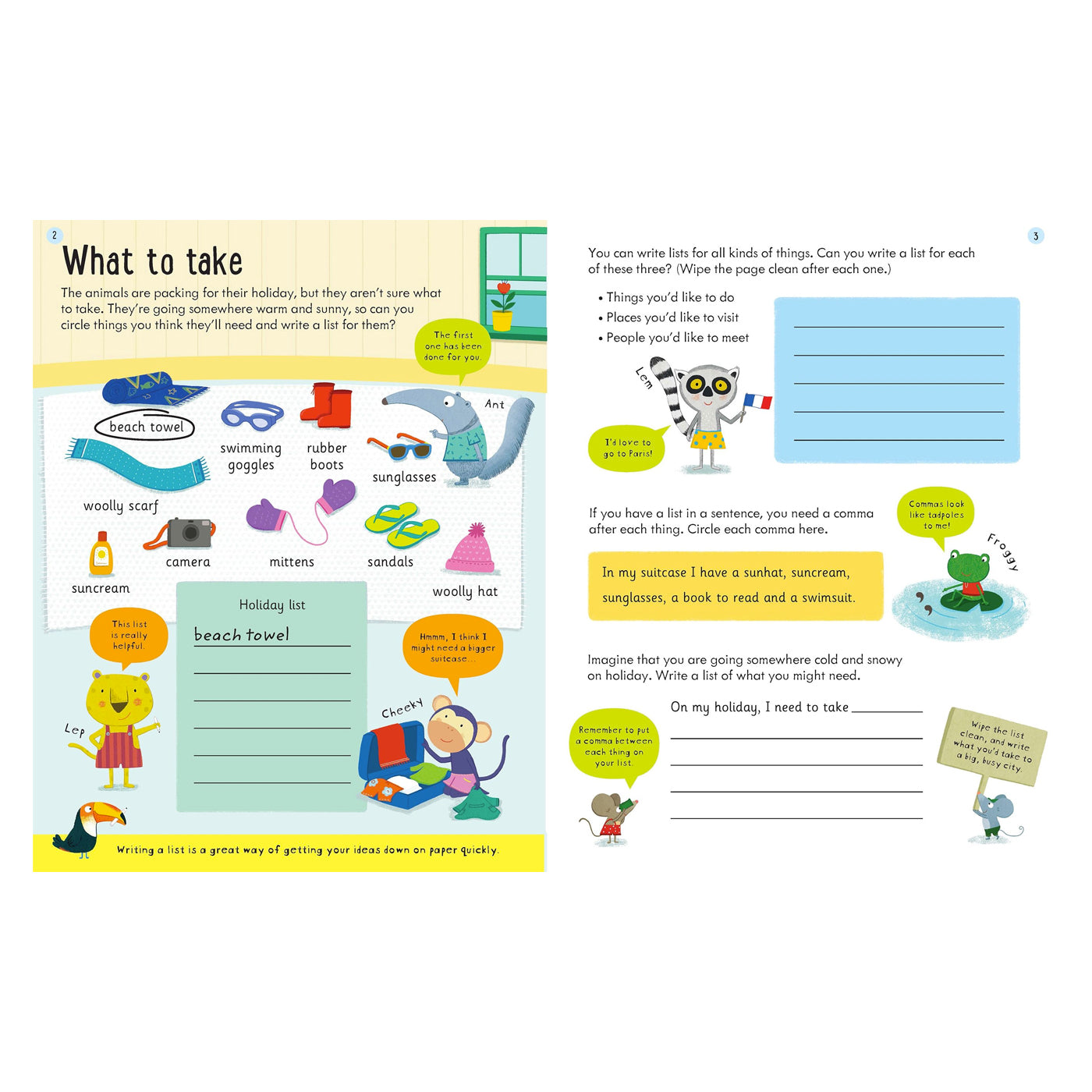 Çocukların okulda öğrendikleri İngilizce derslerini destekleyen Usborne Key Skills serisinin bir parçası olan bu kitap, çocukların günlük yazmalarına, sahneyi hazırlamalarına, mektup yazmalarına ve tanımlayıcı sözcükler kullanmalarına yardımcı olan yazma etkinlikleriyle dolu. Silinerek temizlenen sayfalar sonsuz sayıda alıştırma yapma imkanı sunar.