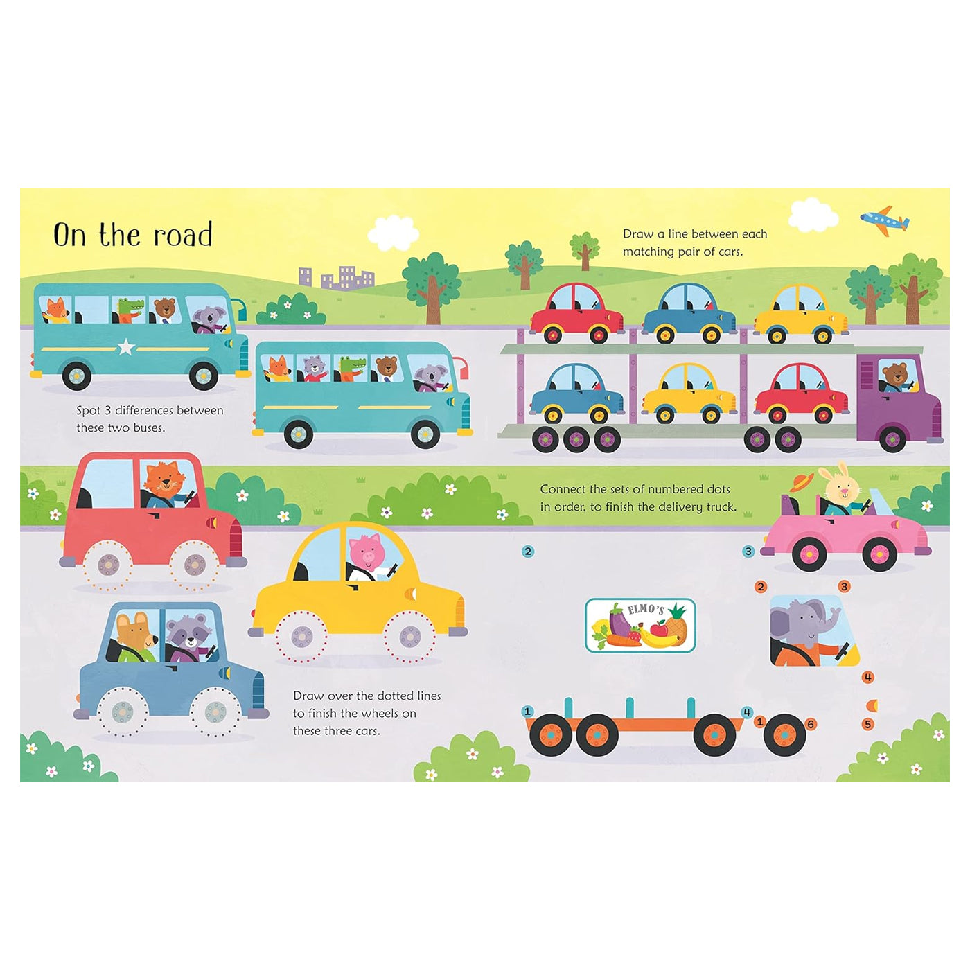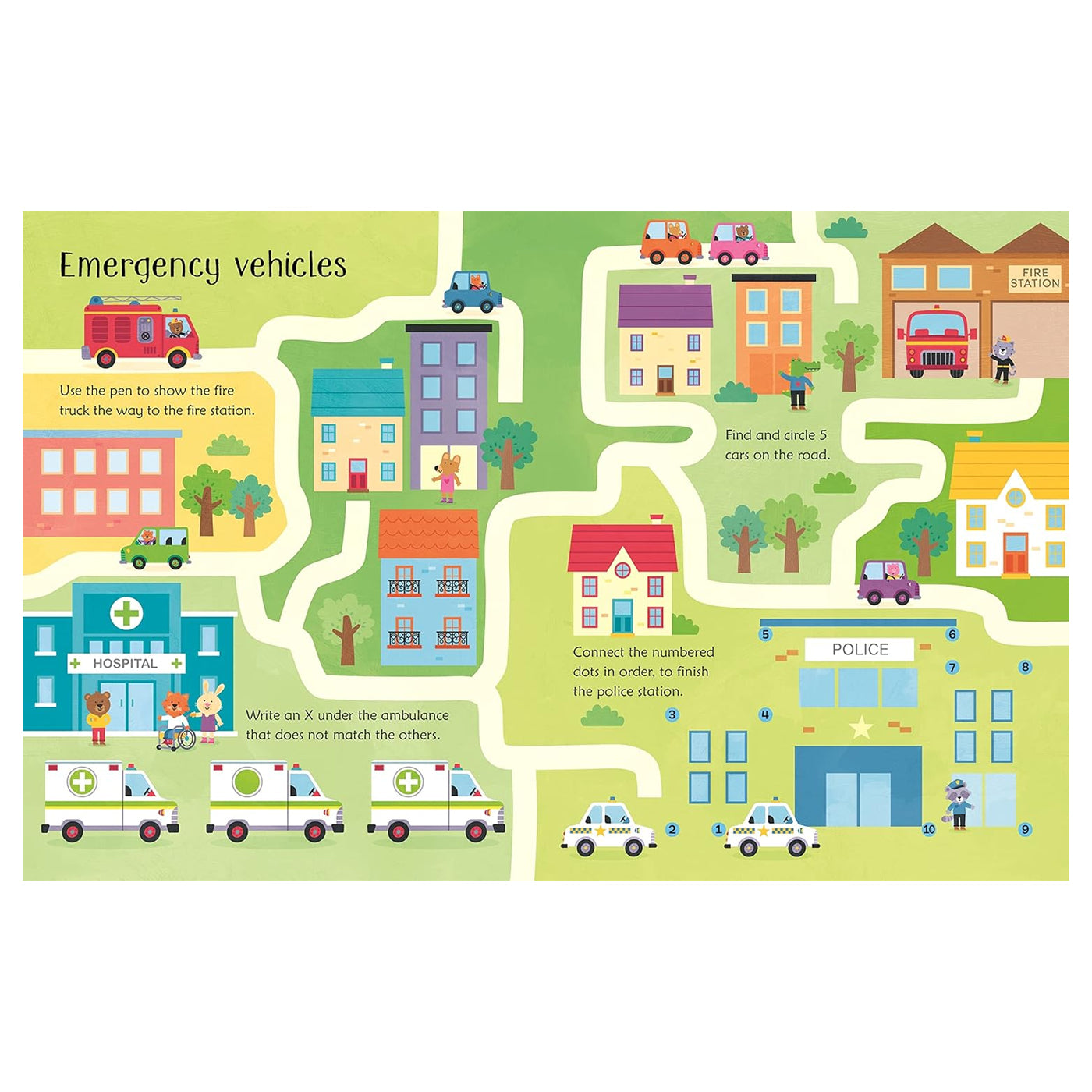 Hayvan arkadaşlara katılın ve heyecan verici araçlarla karşılaşın. Özel kalemi kullanarak labirentleri çözün, noktalı çizgileri takip edin, noktadan noktaya resimleri tamamlayın ve farkları bulun, ardından sayfaları temizleyin ve hepsini tekrar yapın. Bu eğlenceli kitap, küçük çocukların temel sayma, gözlem ve kalem kontrol becerilerini geliştirmeleri için mükemmel.