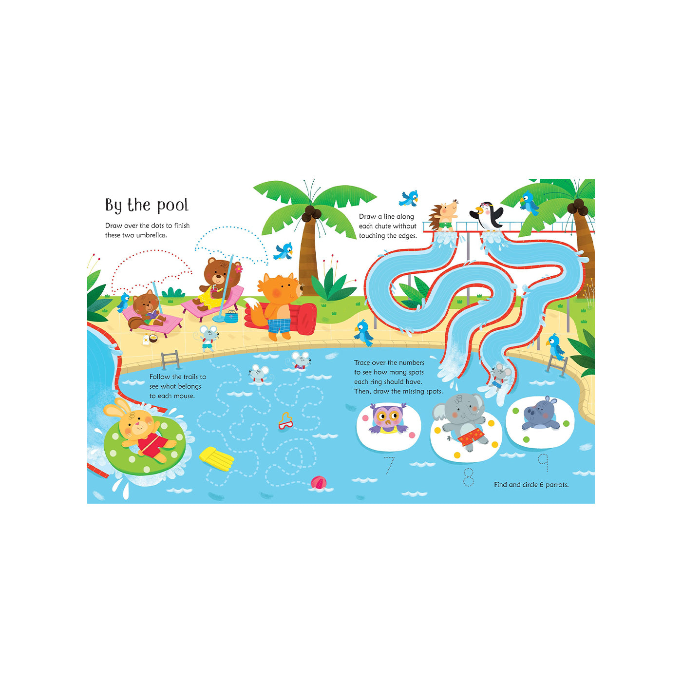 Bu eğlenceli kitap, küçük çocukların sayı sayma, gözlem yapma ve kalem kontrol becerilerini geliştirmeleri için keyifli aktiviteler sunuyor. Sahili ve kayak pistini ziyaret edebilir, kamp gezisine çıkabilir ya da havuz kenarında rahatlayabilirsiniz... Dayanıklı, silinebilir sayfaları sayesinde çocuklar bu etkinlikleri tekrar tekrar yapabilir.