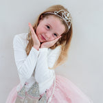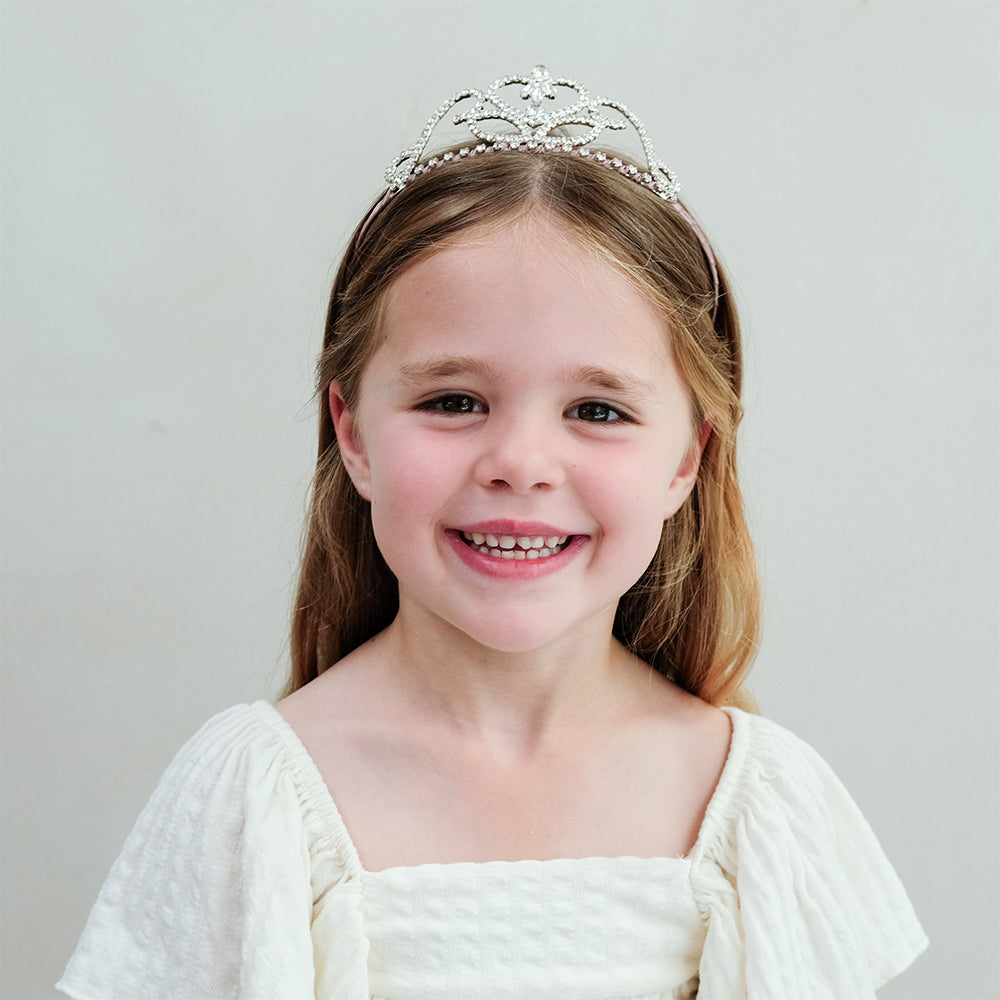 Mimi & Lula Classic Princess Tiara Taç, küçük prensesler için özel olarak tasarlanmış zarif bir taçtır. Yumuşak pembe kurdele kaplı bant ve parıldayan diamanté taşlarıyla parti kıyafetlerine ve unutulmaz anlara mükemmel bir son dokunuş katar.