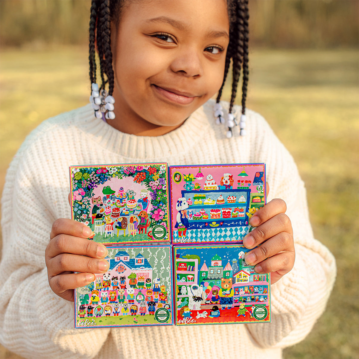 eeBoo, özenle hazırlanmış tasarımları, zarif çizimleri ve kaliteli, dayanıklı materyalleri ile çocuklar ve yetişkinler için oyun dünyasına sakin, keyifli ve estetik bir dokunuş getirir. Özgün illüstrasyonlara sahip oyun ve yapbozları, her yaştan oyuncunun güvenle tercih edebileceği, uzun süre keyifle oynanan özel parçalardan oluşur.