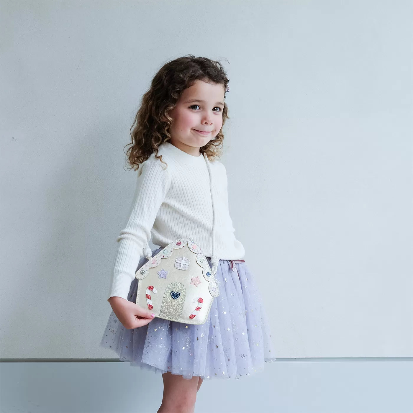 Bu sevimli çantayla yılbaşı dileklerini gerçekleştirin! Şeker kamışları, simli yıldızlar ve tatlı bir çatı ile süslenmiş bu çanta, hem yılbaşı döneminde hem de yılın geri kalan günlerinde kullanmak için ideal.