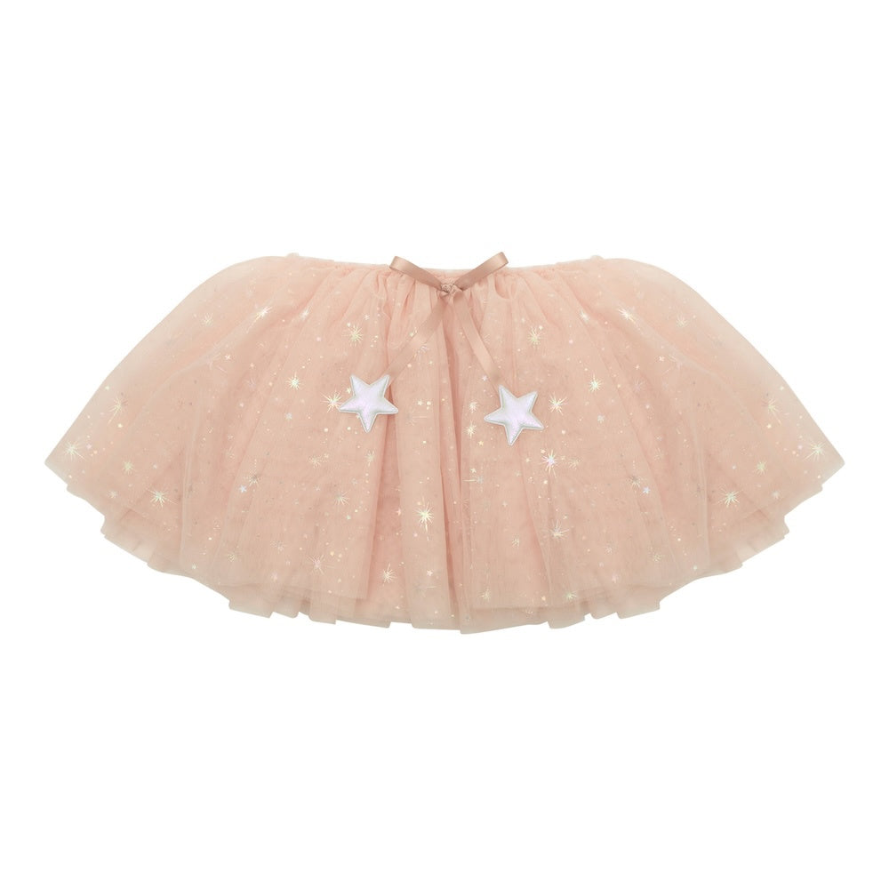 Mimi & Lula Shimmer Princess Tütü ile büyülü ve zarif bir dünyaya adım atın! Yumuşak pembe tül katmanları üzerinde parıldayan metalik yıldızlar, her güne masalsı bir çekicilik katar. Yumuşak pembe tülün katmanları, metalik yıldızlarla süslenmiştir. 3-10 yaş arası çocuklara uygun boyuttadır.