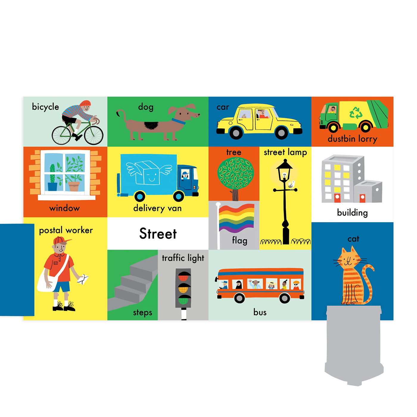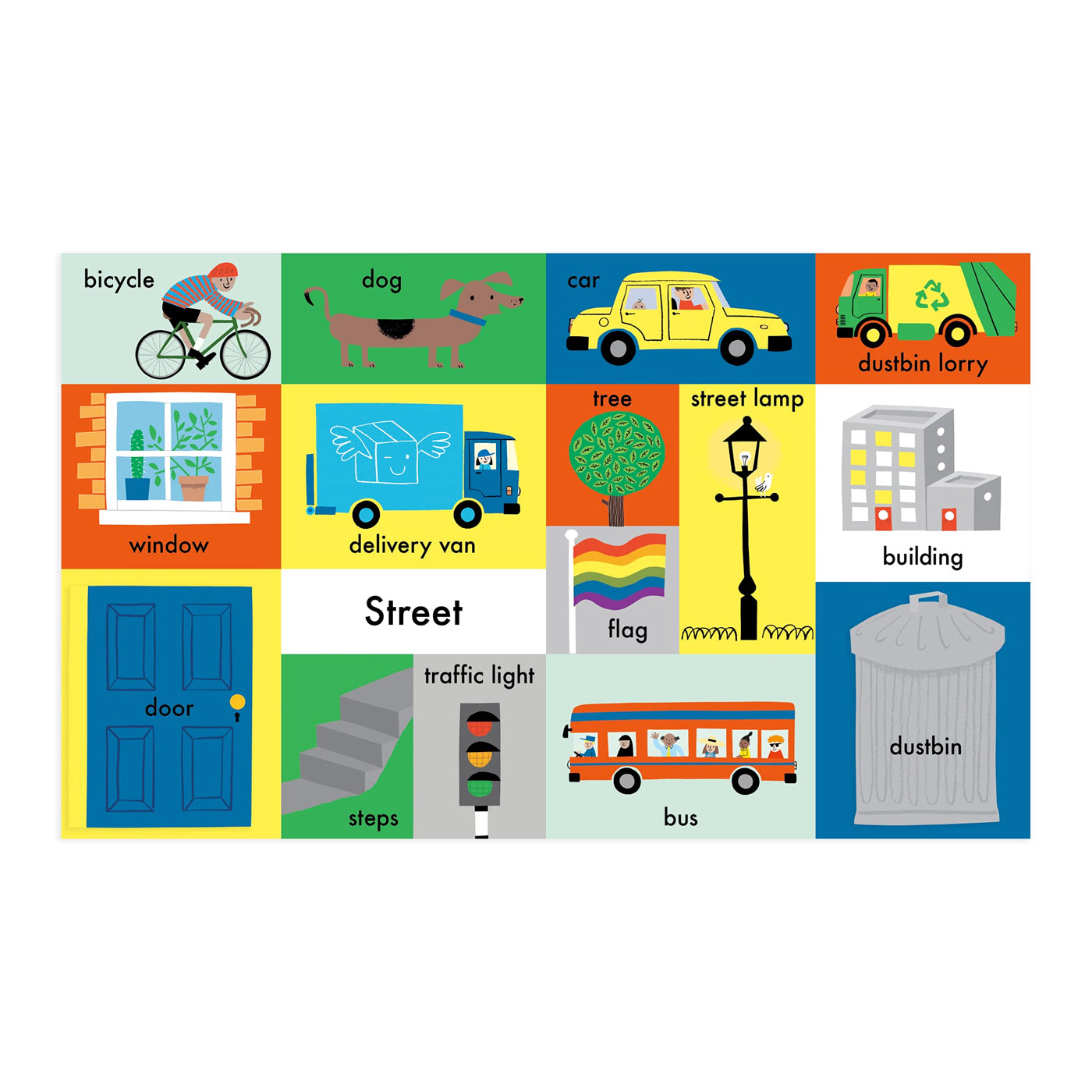 Tüm küçük çocuklar, şekilli kapakçıkların arkasındaki renkli karakterleri aramaya ve ardından bir şehirde bulabileceğiniz hayvanları, nesneleri ve insanları adlandırmaya bayılacak. Ev eşyaları tasarımcısı Edward Underwood'un çarpıcı sanat eserleriyle farklı temalara göre düzenlenmiş bu güzel kitap, kelime dağarcığı oluşturmak ve konuşmayı teşvik etmek için mükemmel bir araç.