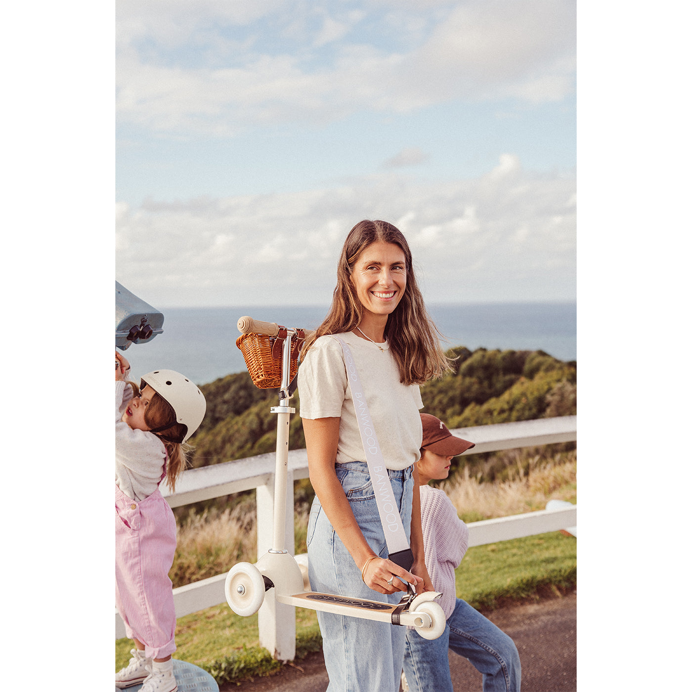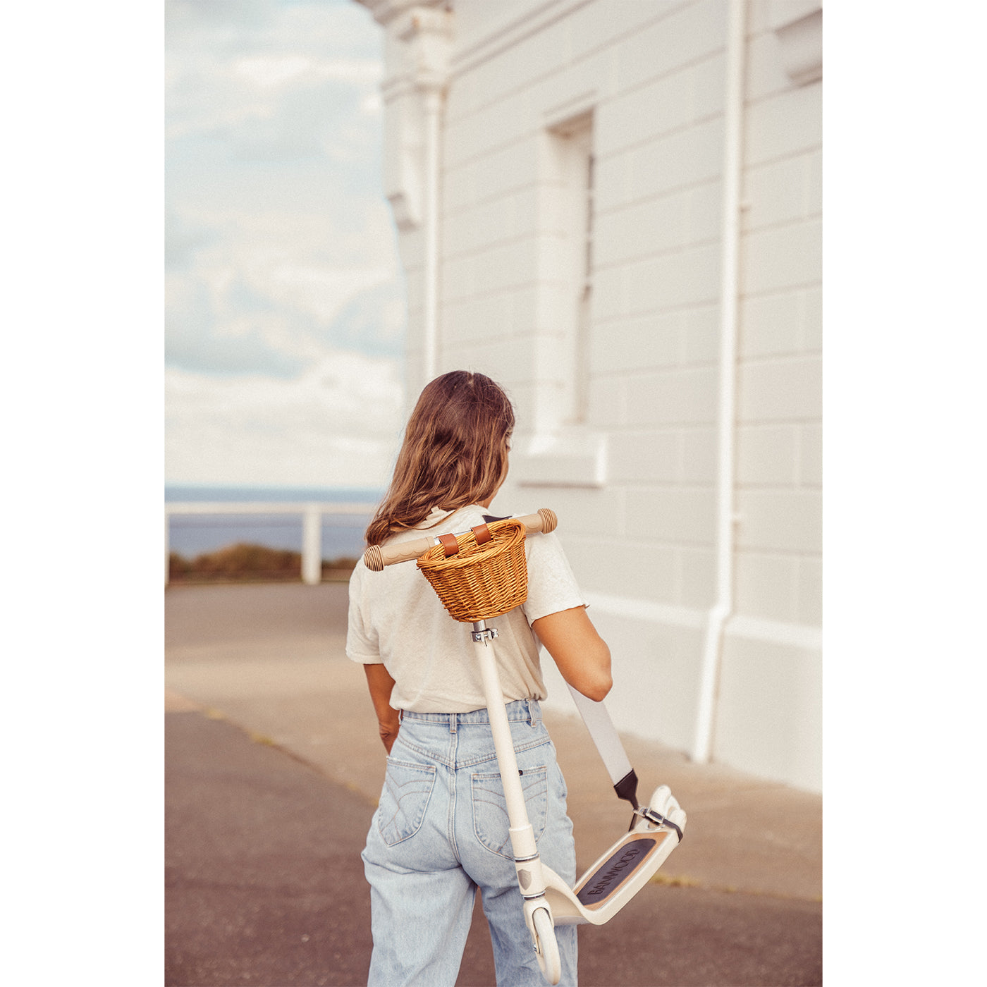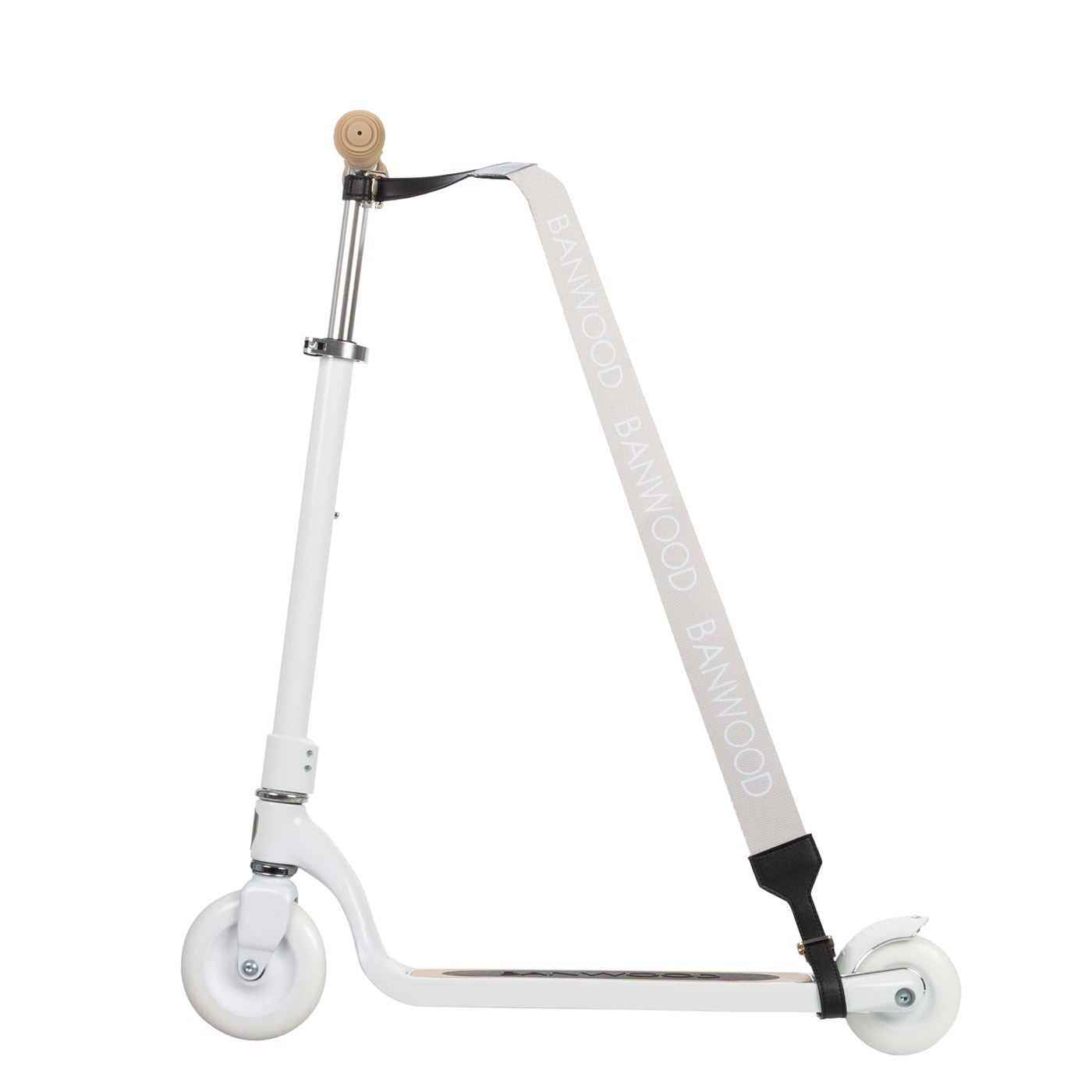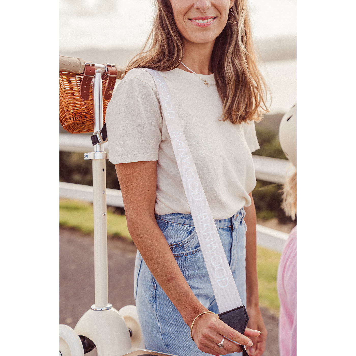Minimalist bir tarza sahip olan Banwood taşıma askısı, denge bisikletleri ve scooter'lar ile kolayca kullanılabilir. Dayanıklı dacron (polyester) malzemeden yapılmıştır. Kayış üzerinden şık bir Banwood logosu bulunmaktadır. Vegan deri detayları içerir.