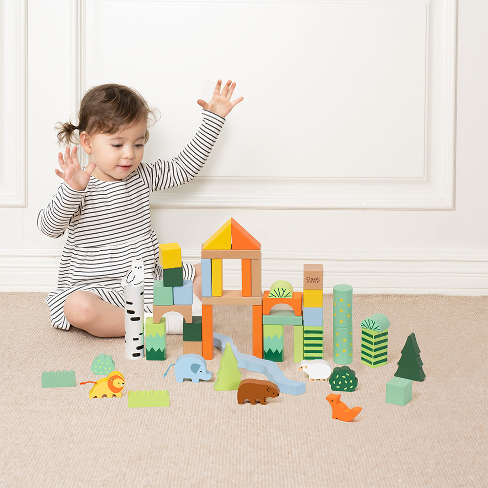 Classic World Ahşap Blok - Orman ile minikler doğanın büyüleyici dünyasını kendi elleriyle inşa ediyor! Aslan, ayı ve tilki gibi sevimli hayvan figürleriyle süslenmiş bloklar, çocukların hayal güçlerini harekete geçirirken renkleri ve şekilleri tanımalarına da yardımcı oluyor. El-göz koordinasyonunu destekleyen bu orman temalı set ile çocuklar kendi orman dünyalarını kurarken keyifli saatler geçiriyor.
