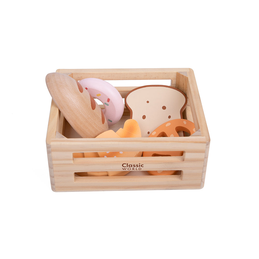 Minik şefler için kahvaltı zamanı! Classic World Ahşap Ekmek Seti, çocukların günlük yiyecekleri tanımasına ve taklit oyunlarıyla hayal güçlerini geliştirmelerine yardımcı olur. Oyun sonrası ekmekler ahşap kutusuna yerleştirilerek düzenli olma alışkanlığı kazanılır. Classic World Ahşap Ekmek Seti, sade ve eğitici tasarımıyla erken yaş gelişimini destekler.