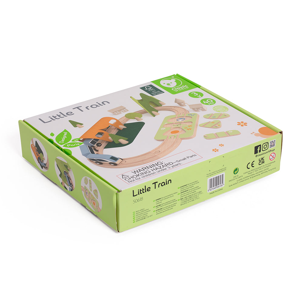 İçinde bir tünel, bir istasyon ve rotayı yeniden oluşturmak için birleştirilecek şekillerden oluşan bir yapboz var. Renkli çiçekler ve saklı hayvanlar, çocukların doğru şekilleri bulmasına yardımcı oluyor. Bloklar üst üste dizildiğinde ise tren yolunun etrafındaki evler oluşturuluyor. Classic World Ahşap Küçük Tren, yaratıcılığı, dili, ince motor becerilerini ve koordinasyonu geliştirmek için ideal.