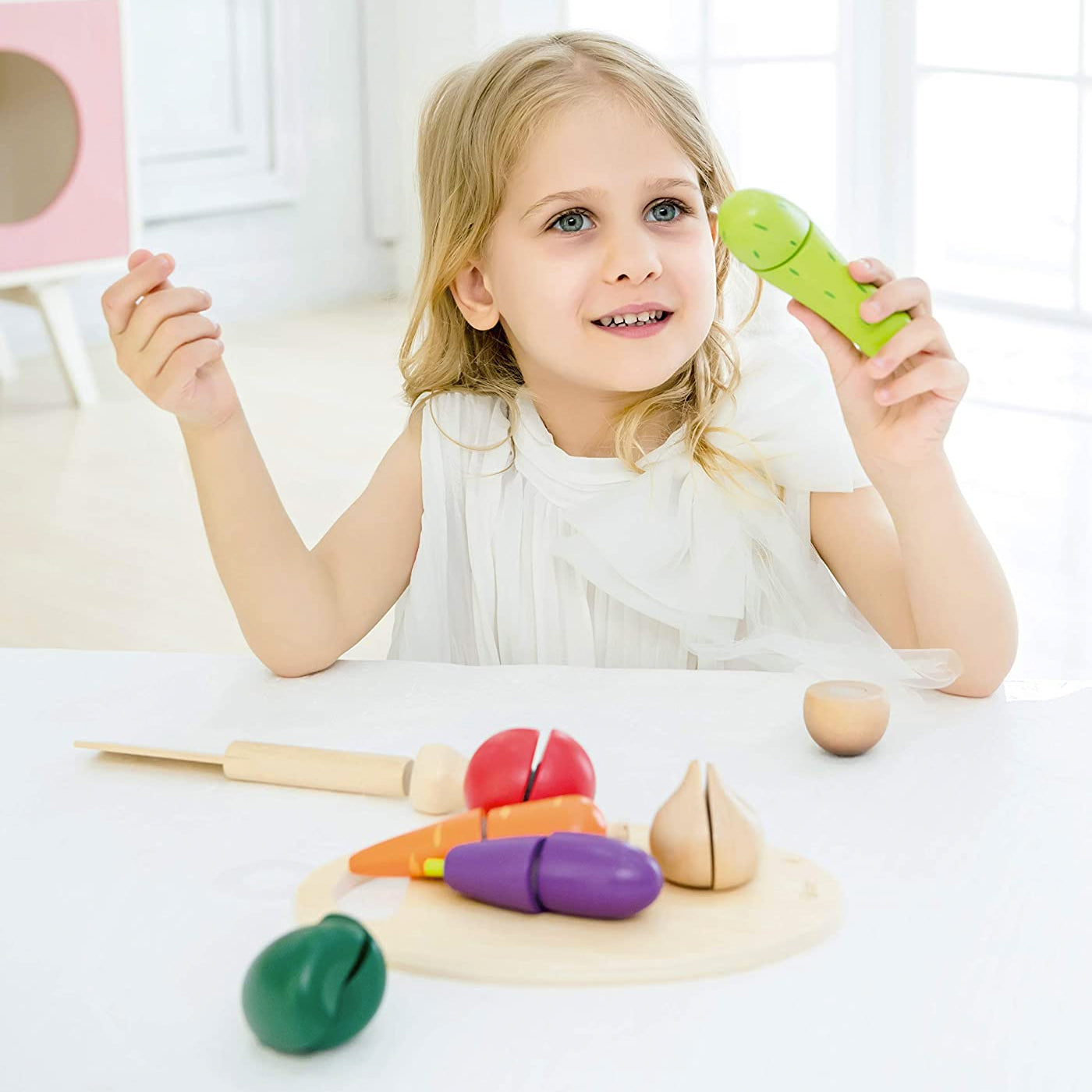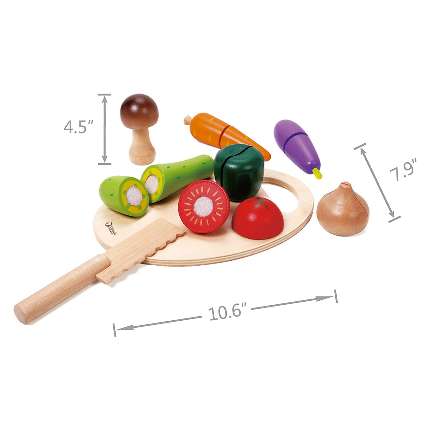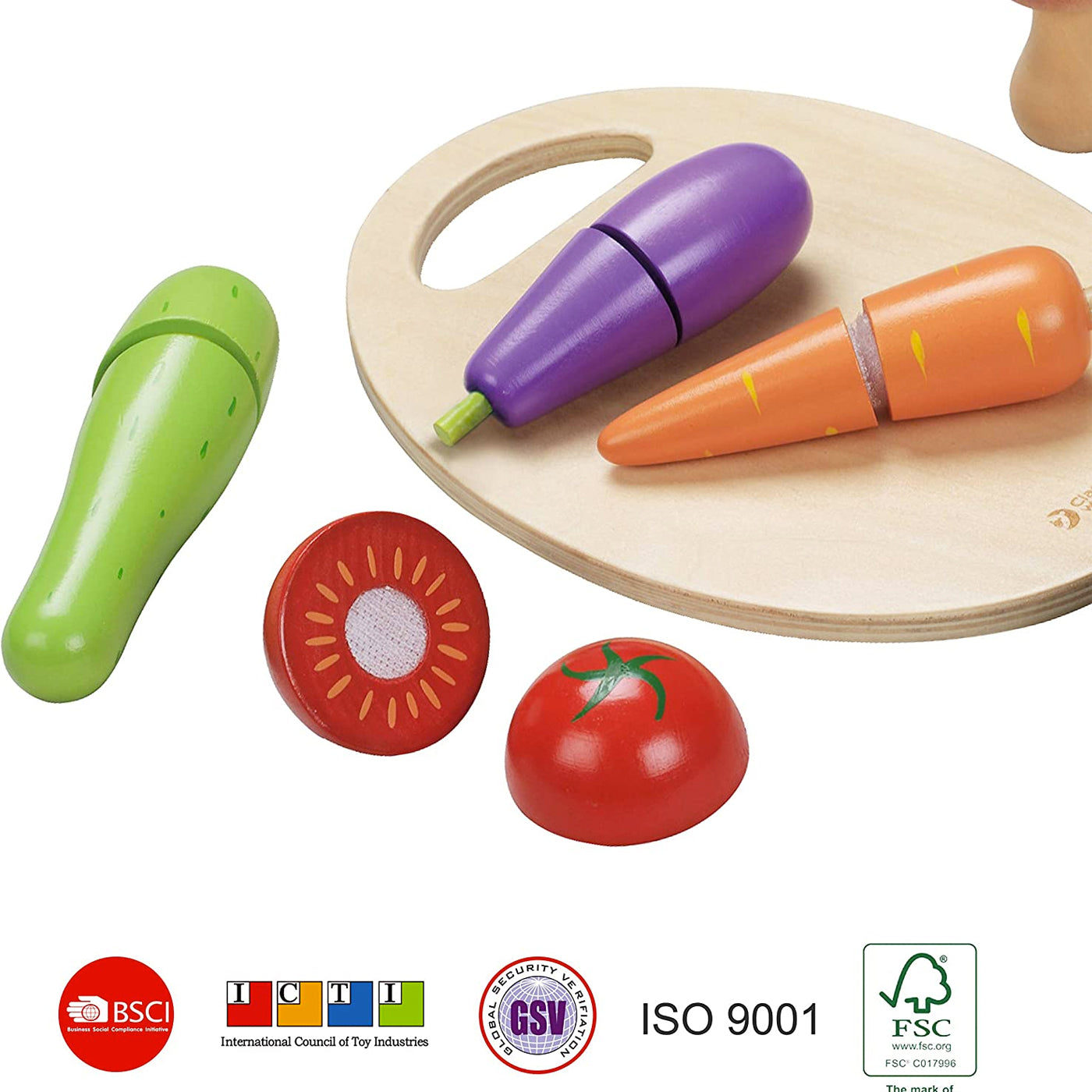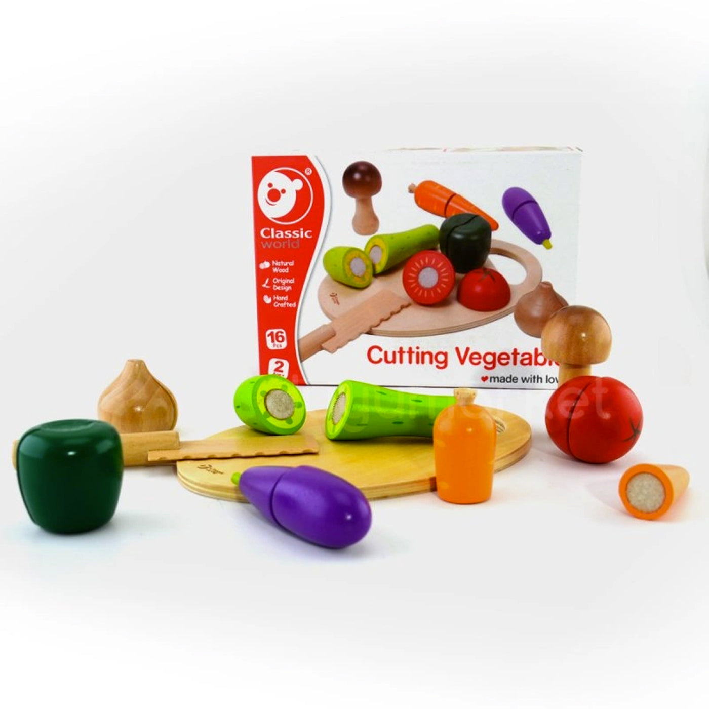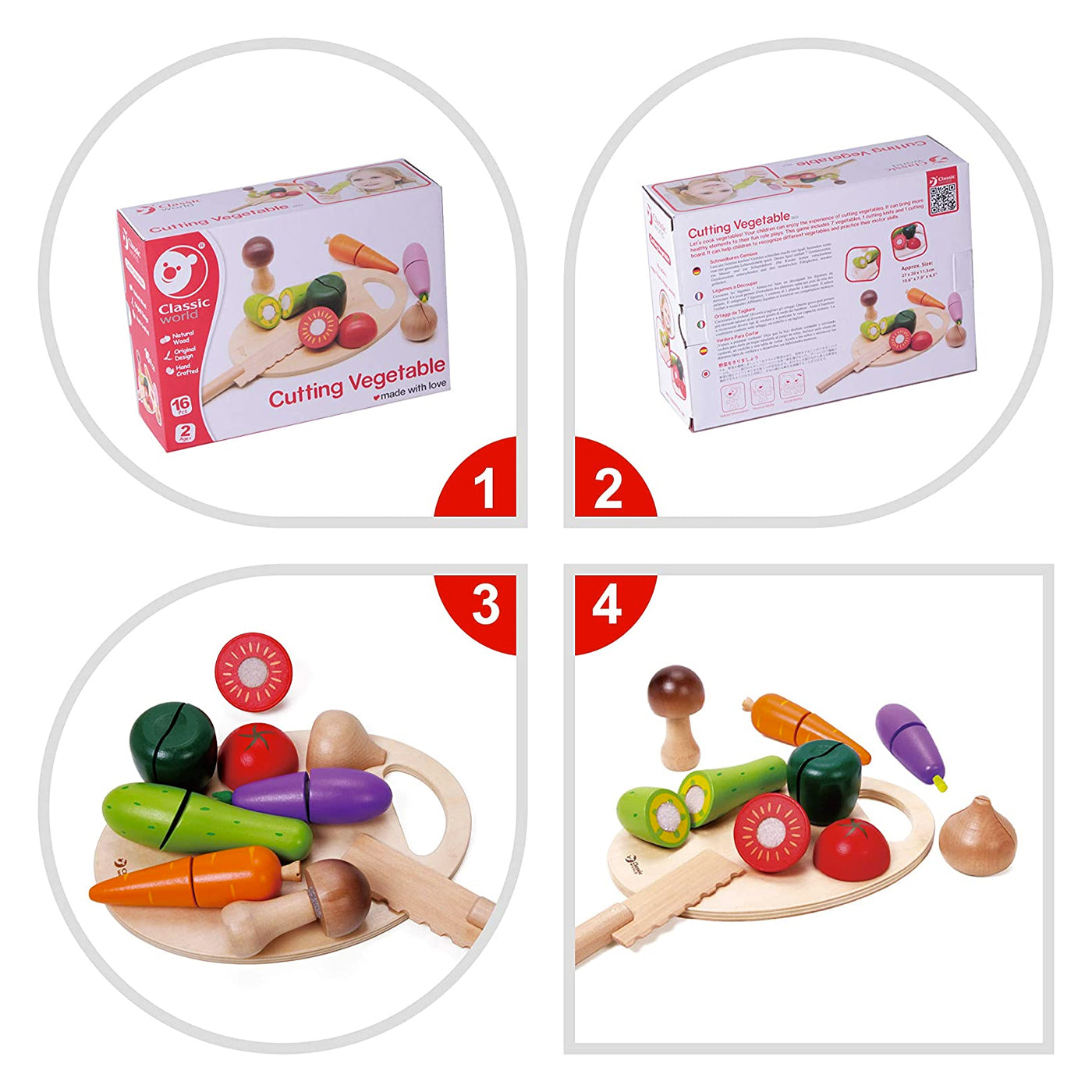 Bu Classic World oyuncağı aynı zamanda bebeğinizin sebzeleri tanımasını, renkleri öğrenmesini ve kaliteli vakit geçirmesimi sağlamak için üretilmiştir. Bebeğiniz sizinle veya arkadaşlarıyla oynarken eğlenecek ve öğrenecek. Sebzeler arasındaki "cırt"lar sayesinde ahşap bıçağı ile kesim yaparken bir kesme sesi de duyacak ve bu onun çok hoşuna gidecek.