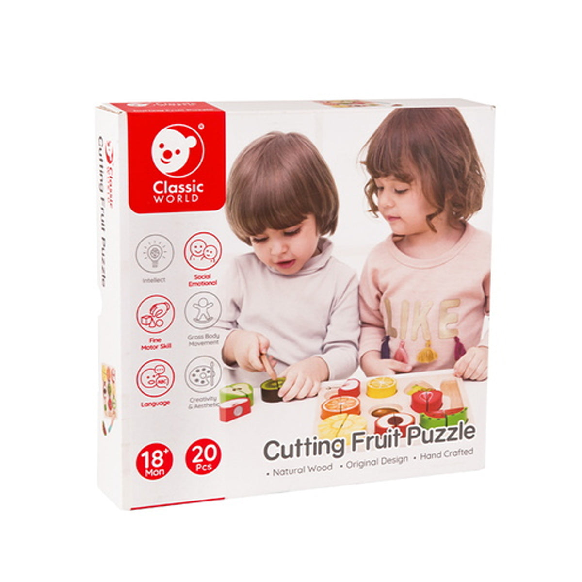 Oyun bittikten sonra kesme tahtası ters çevrilerek şekil eşleştirme oyununa dönüşür. Böylece çocuklar yapboz parçalarını doğru yerlerine yerleştirerek problem çözme ve ince motor becerilerini destekler. Classic World Meyve Kesme Yapboz, sağlıklı besinleri tanıma, hayal gücünü geliştirme ve motor becerileri güçlendirme açısından eğitici ve eğlenceli bir oyuncaktır.