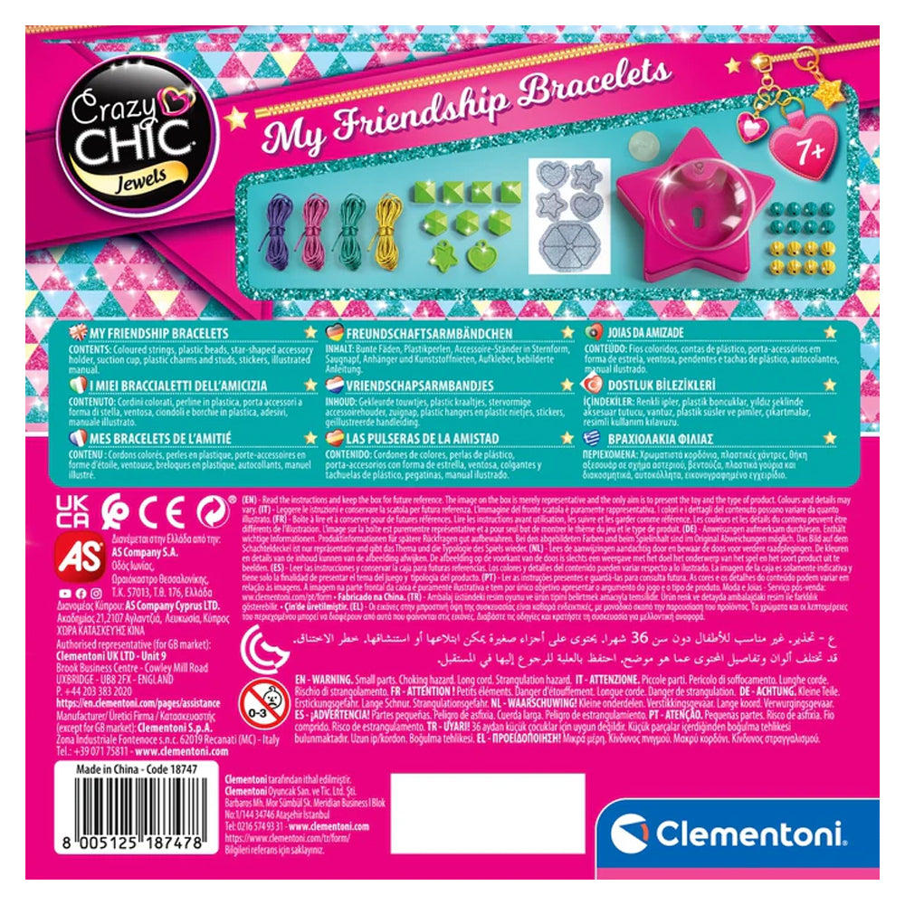 Kutu içerisinde; çalışma tezgahı, saç boyama aleti, renkli saç tebeşirleri, yumuşak kauçuk değiştirilebilir süngerler, saç boncukları, Crazy Chic çıkartmaları ve resimli kullanım kılavuzu bulunmaktadır.