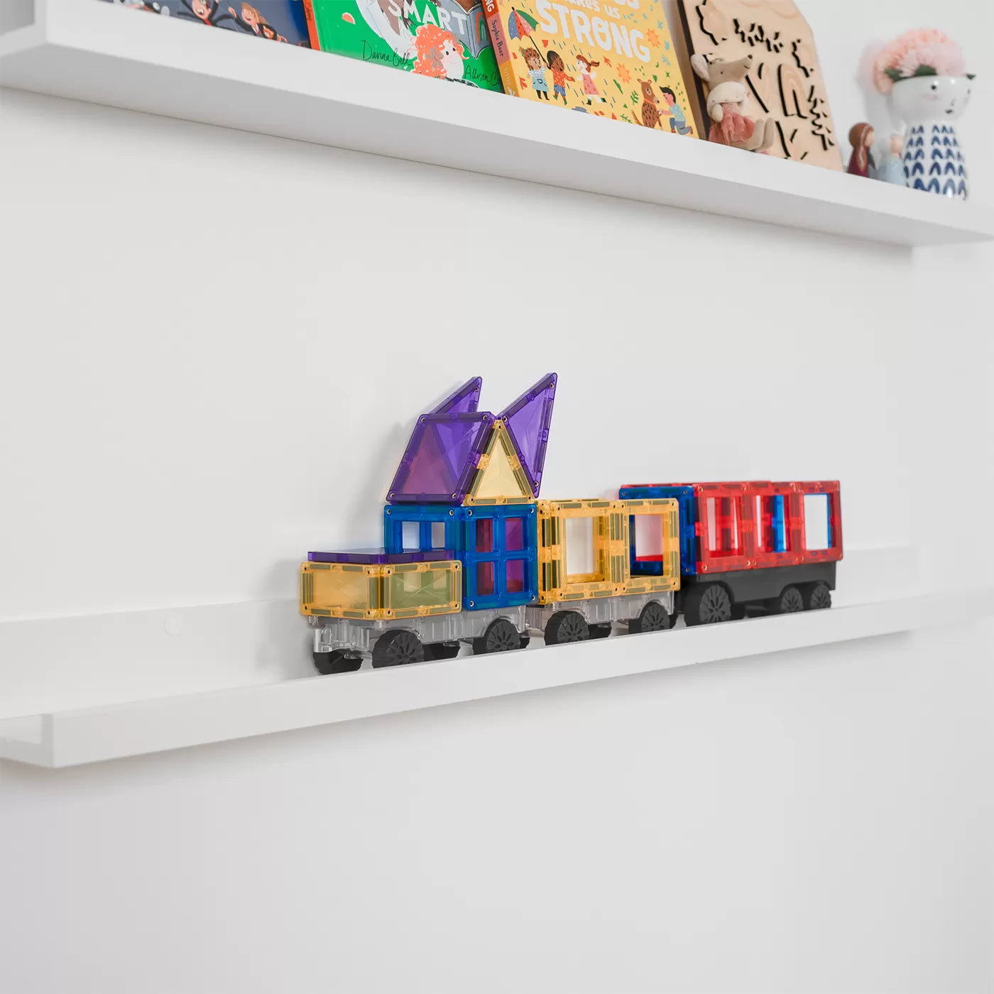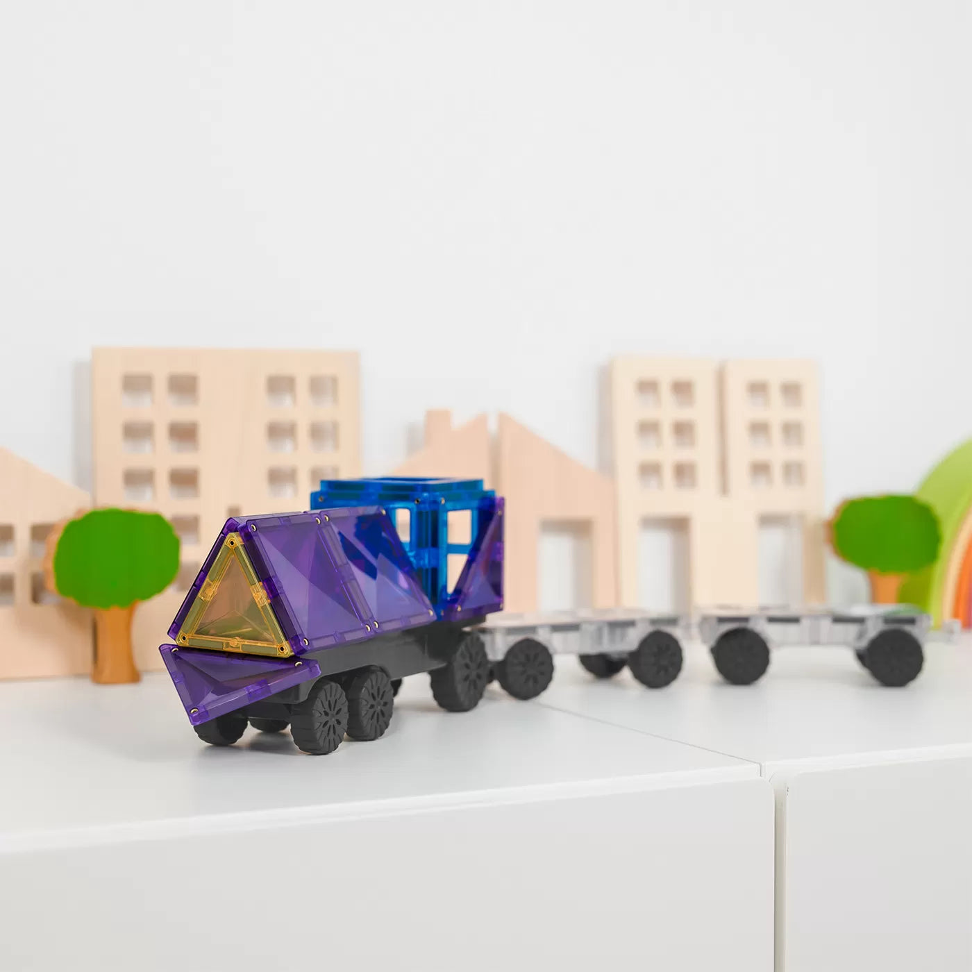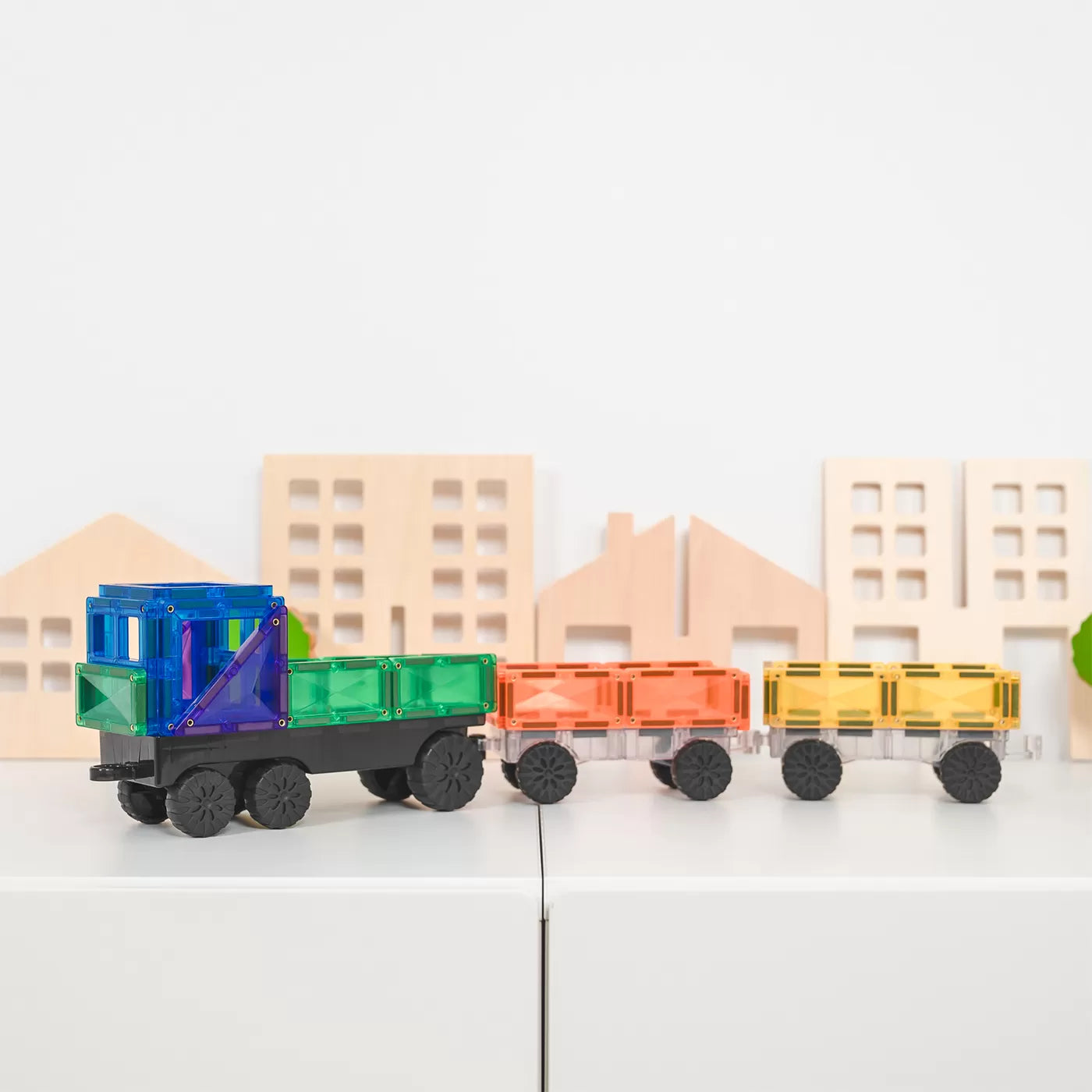 Çocuklar, kendi kamyonlarını, trenlerini, uçaklarını, ambulanslarını, itfaiye araçlarını yaratırken mıknatıslar, şekiller ve renkler yoluyla STEAM öğrenimini keşfeder.