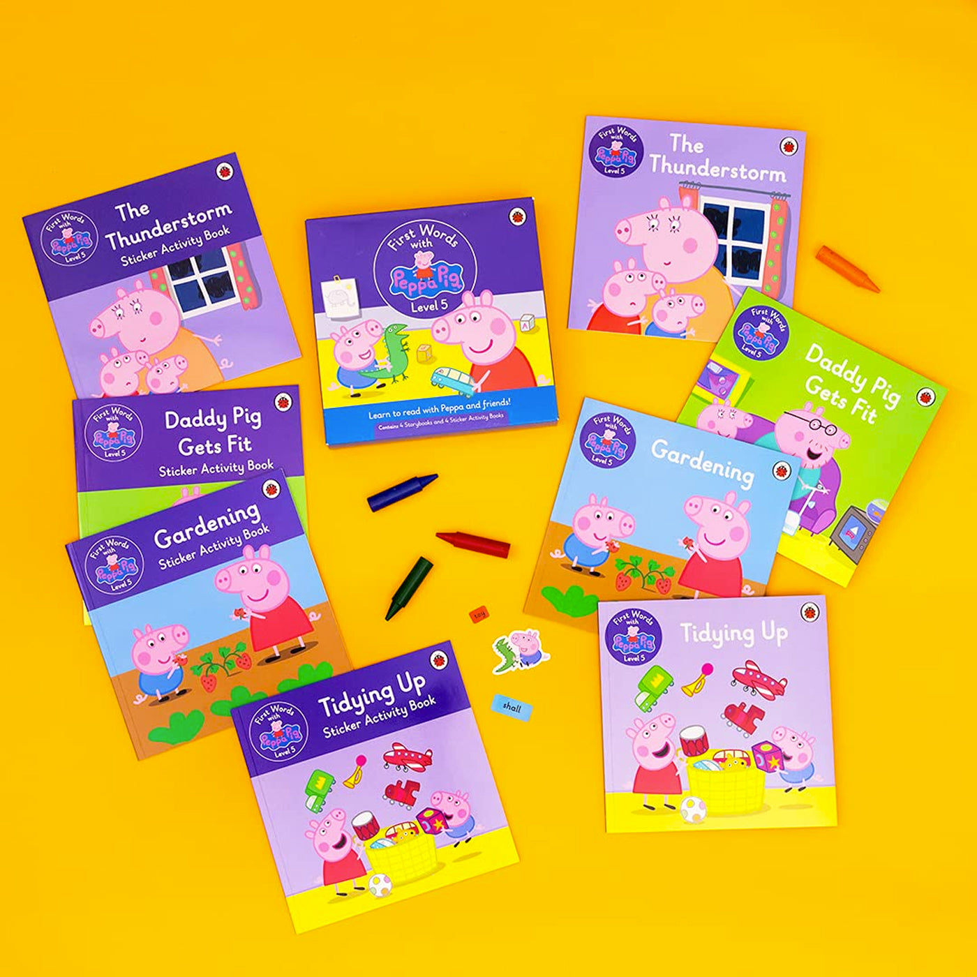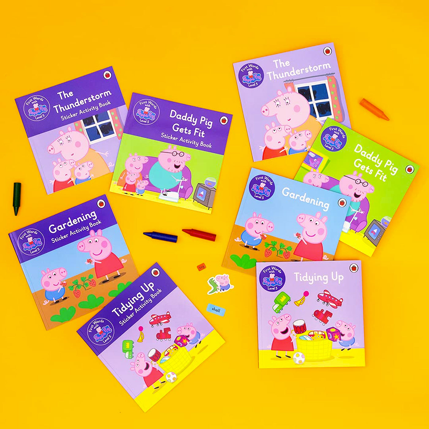 Bu harika setin içinde İngilizce öğrenen çocuklar için seviyelendirilmiş 4 adet Peppa Pig hikaye kitabı ve 4 adet sticker aktivite kitabı yer alıyor. Çocuklar, bu kitaplar sayesinde en sık kullanılan İngilizce kelimeleri pratik yapma imkanı buluyor. Set, Daddy Pig Gets Fit, Gardening, The Thunderstrom, Tidying Up kitaplarını içeriyor. Bunlara ek olarak aynı isimli sticker içeren aktivite kitapları da bulunuyor.
