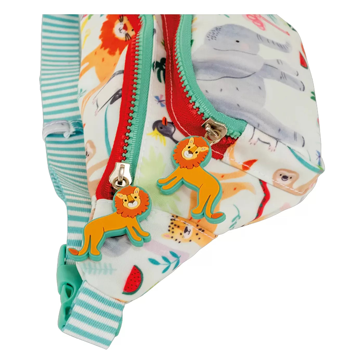 Bu Kemer Çantasında iki kalın fermuar çekme ucu, iki kullanışlı bölme ve muhteşem çizgili bir kumaştan yapılmış ayarlanabilir bir kayış bulunur. Çantanın içinde hoş bir baskı ve kişiselleştirme için 'Ben aitim...' etiketi bulunur.