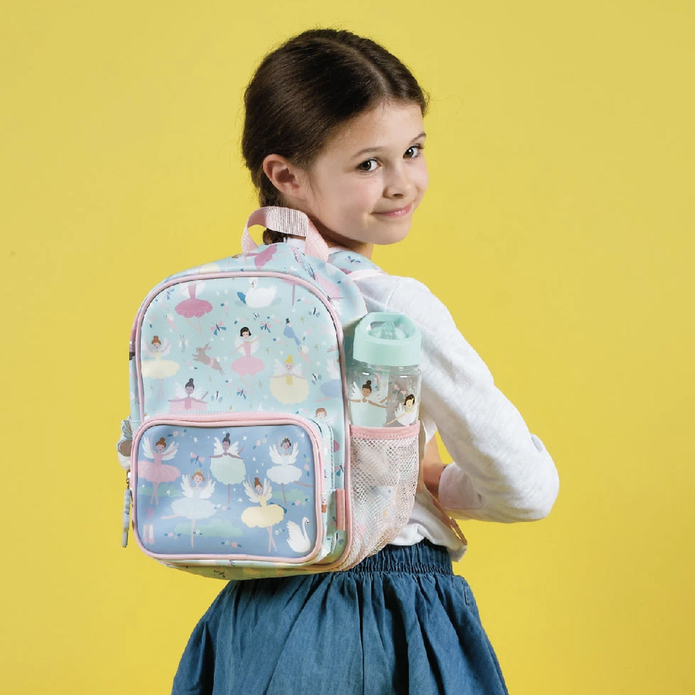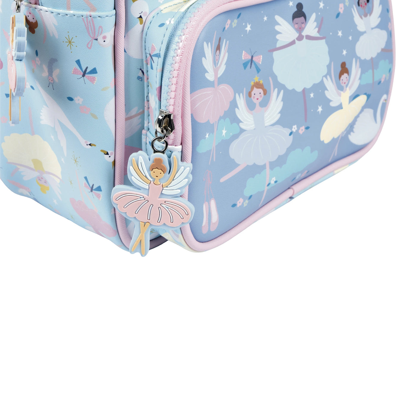 Güzel Balerin'in sahip olduğu bu Enchanted tasarım sırt çantası çok sevimli! Kullanışlı bir ön cep, bir içecek şişesi tutacağı, 2 adet balerin şeklinde fermuar, tıknaz eğlenceli fermuarlar, ekstra konfor için dolgulu askılar ve dikili isim etiketi ile tamamen baskılı astar. Bir mandalın üzerine asılabilen kullanışlı bir taşıma halkası vardır. Günlük kullanım, dans okulu, piknikler, yatıya kalmalar ve okul için mükemmeldir !