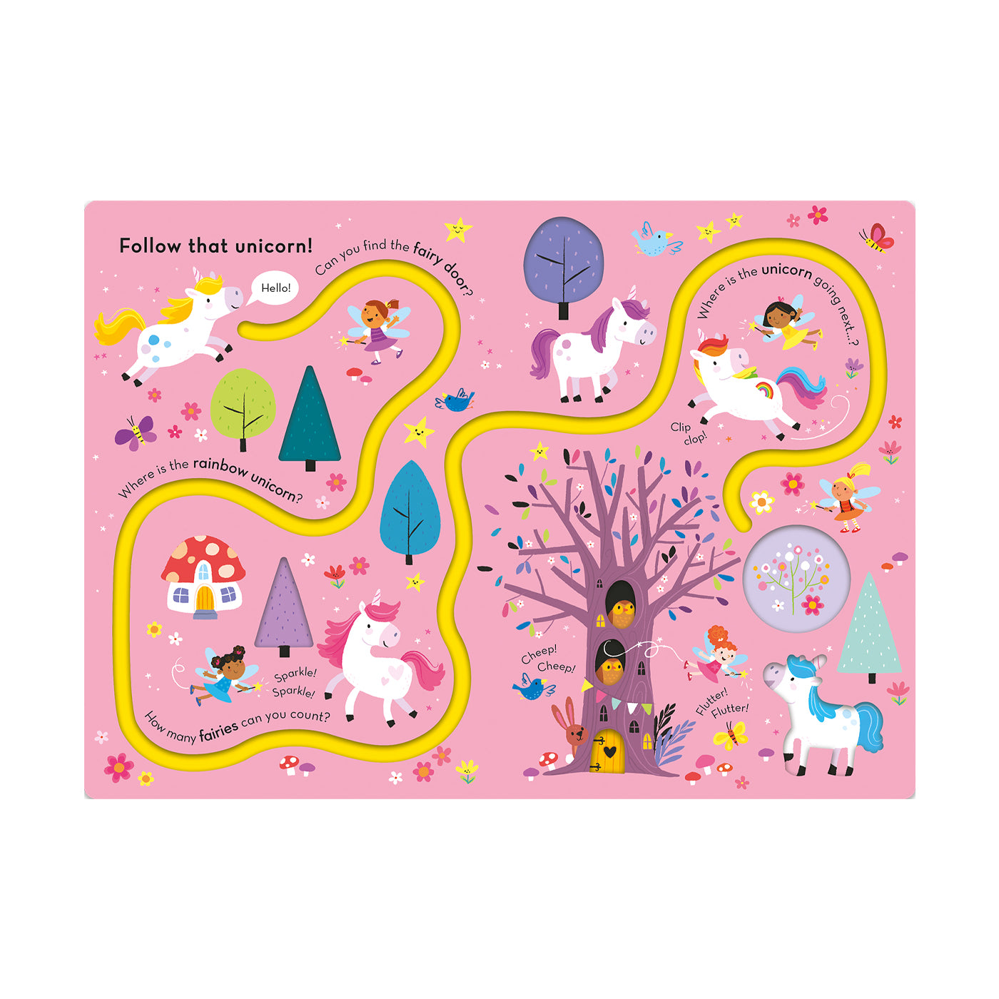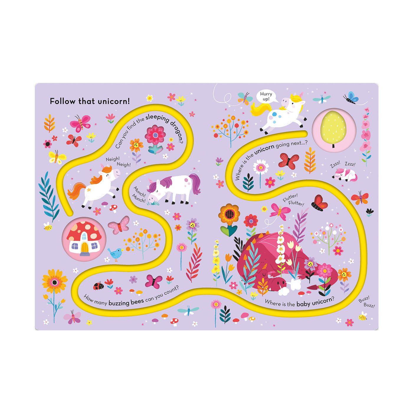 Minik parmaklar sayfalardaki oluklu yolları takip etmeye, renkli çizimleri ve büyülü sahneleri keşfetmeye bayılacak! Parlak renkli illüstrasyonları, ilk kelimeleri öğrenmeye yardımcı olan kolay metinleri, duyusal ve etkileşimli oyunu destekleyen oyukları ile bu kitap, erken öğrenme dönemi için ideal.