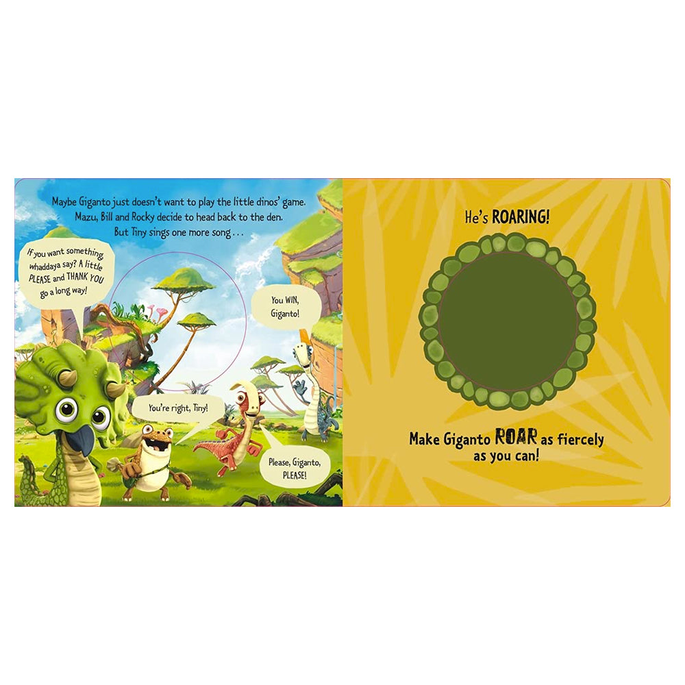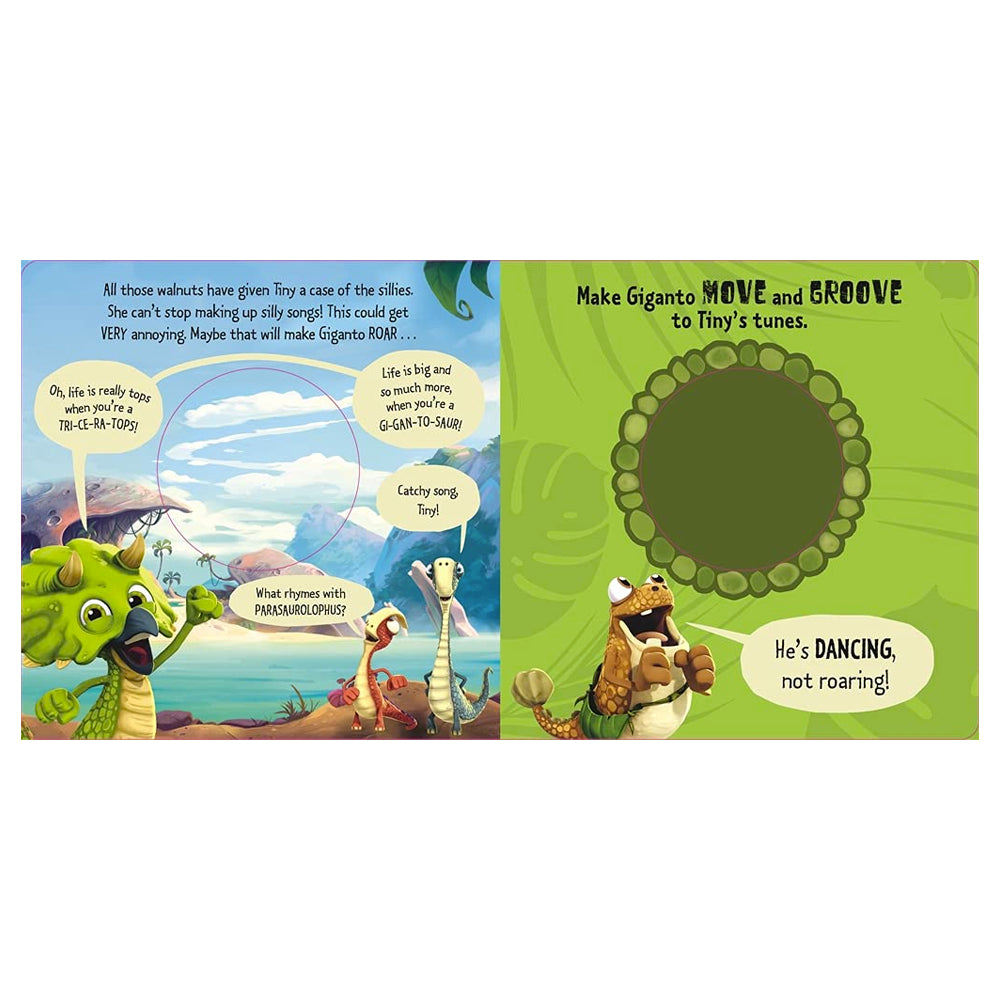 Giganto'yu kükretmeye çalışan dört dinozor arkadaşı hakkındaki bu peluş kukla kitabı, ilhamını Gigantosaurus isimli TV dizisinden almaktadır.