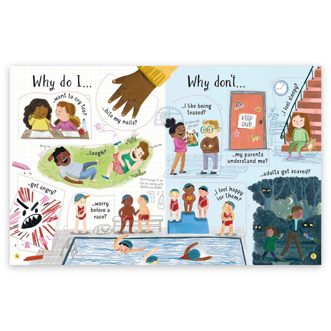 Utandığımda ne yapmalıyım, uyumak bana kendimi daha iyi hisettirir mi, neden her zaman mutlu olamıyorum gibi çocukların duygulara dair sorularını harika çizimler eşliğinde anlatan bu kitap, kapakçıkların altında yer alan cevaplarla da çocukların çeşitleri duyguları daha yakından tanımasına ve keşfetmesine olanak sağlıyor.