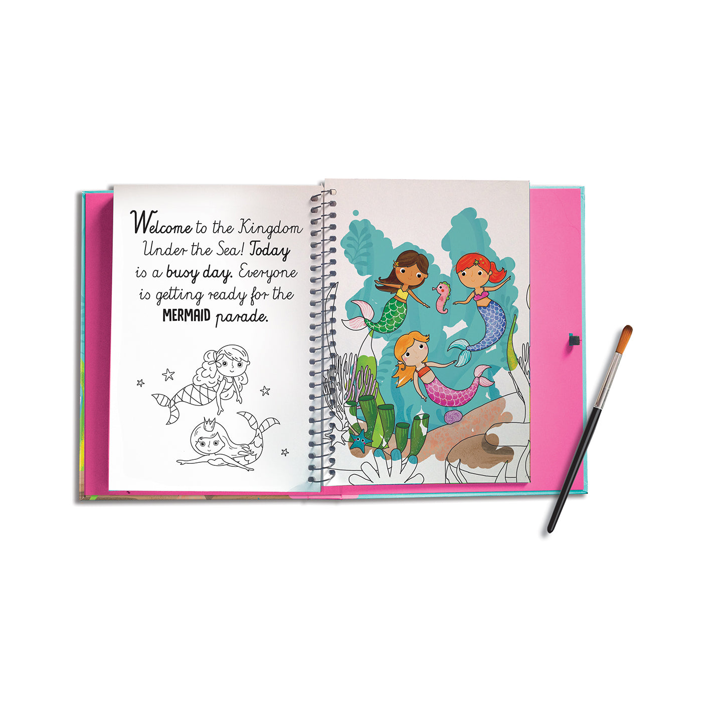 Tekrar tekrar boyayabileceğiniz büyülü resimler! Magic Water Coloring ile renkli deniz kızı resimleri oluşturun. Basitçe suyla boyayın, kurumaya bırakın ve ardından resimlerinizi tekrar boyayın! İçinde suyla boyamak için çok sayıda Sihirli Su Boyama resmi ve farklı boya kalemleriyle boyamak için sayfalar içerir. Daha fazla resim oluşturmak için arkadaki boş sayfaları da kullanabilirsiniz.