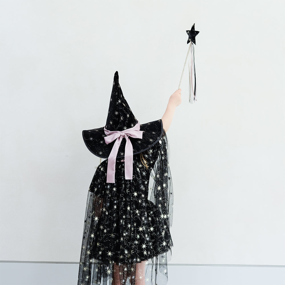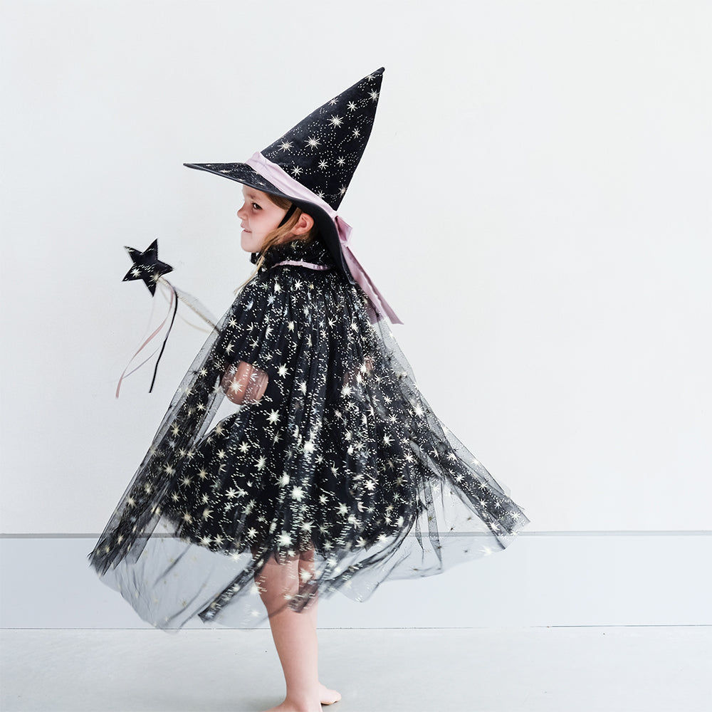 Mimi & Lula Agatha Witch Pelerin ile bu Cadılar Bayramı'nda büyülü bir atmosfer yaratın! Siyah yumuşak tül katmanları, metalik altın yıldızlarla süslenmiş bu pelerin, Agatha şapkası, tütüsü veya değneği ile tam bir kostüm oluşturmak için idealdir. Yumuşak siyah tül katmanları, metalik altın yıldızlarla süslenmiştir.