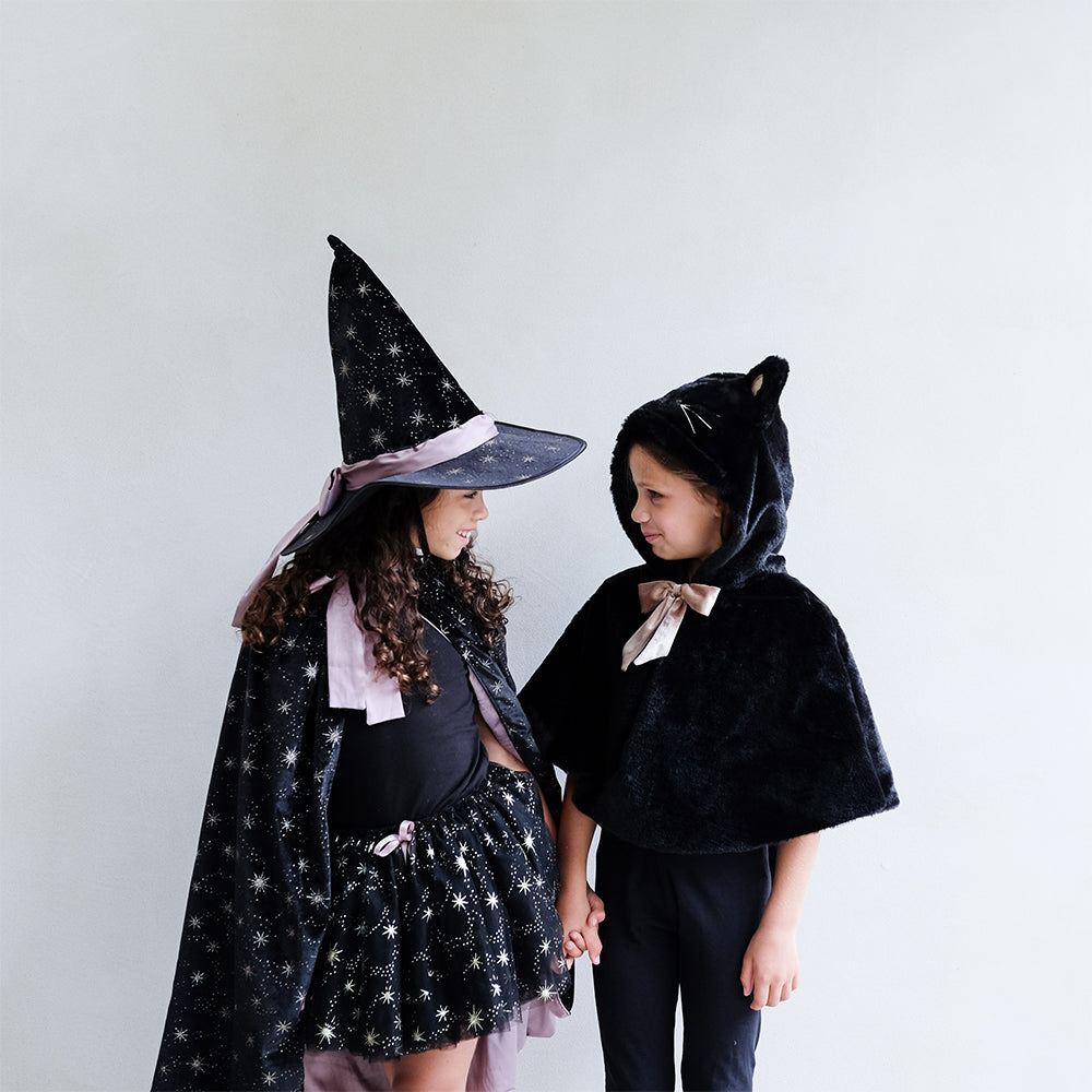 Mimi & Lula Black Cat Pelerin ile oyun saatlerine sevimli bir adım atın! Yumuşak suni kürk kumaştan yapılmış, kapüşonlu ve altın simli kulak detaylarıyla küçük kedi hayranları için mükemmel bir kostüm ya da günlük giyim aksesuarıdır.