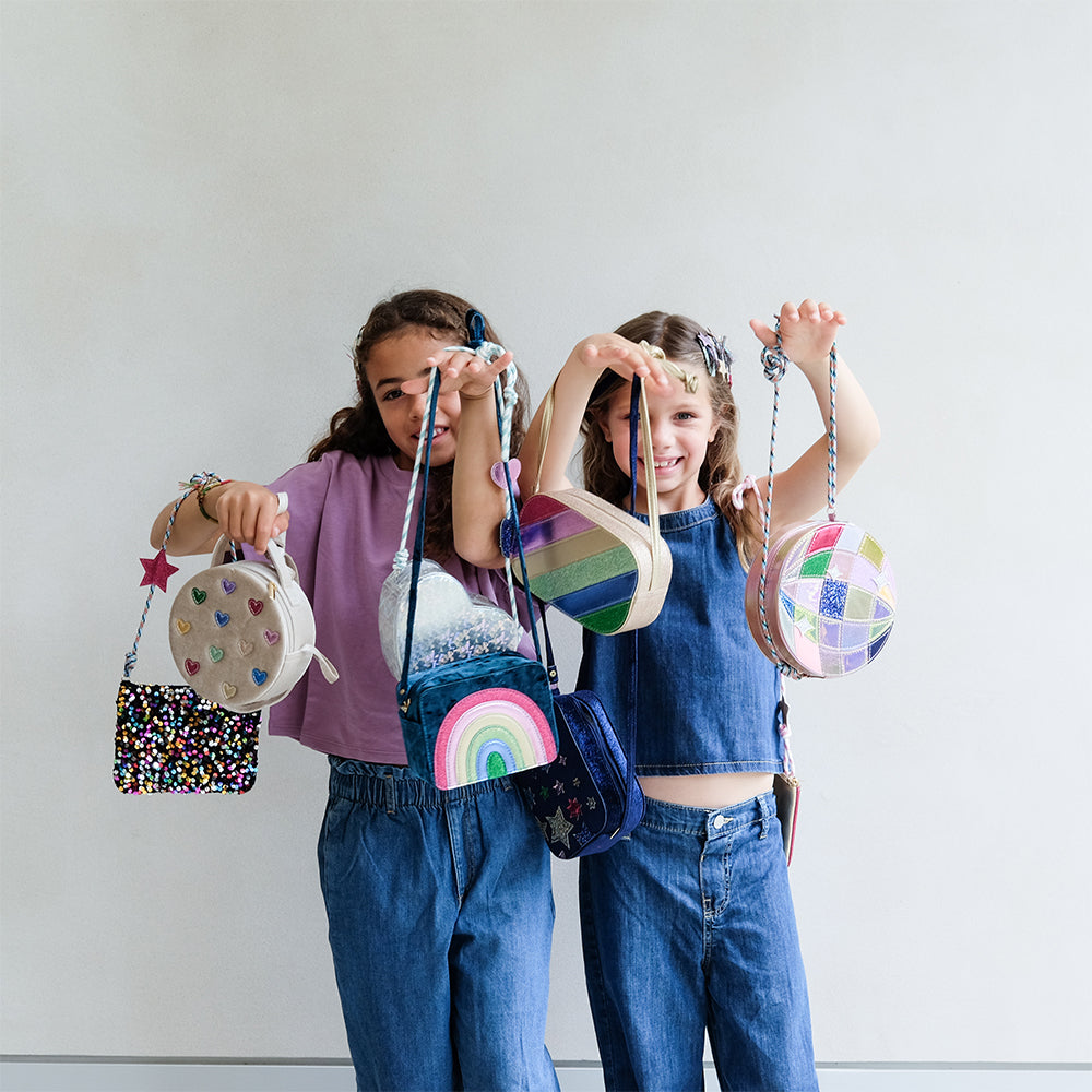 Mimi & Lula Mega Sparkle Çanta, holografik kumaştan üretilmiş ve her kombine ekstra bir ışıltı katmak için ideal bir aksesuardır. Parlak kalp süslemeleriyle sevgi dolu bir hava yayar. Fermuarlı üst kapama sahiptir.