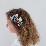 4 cm uzunluğunda, kurdele kaplı clic clac tip klips tokalardır.