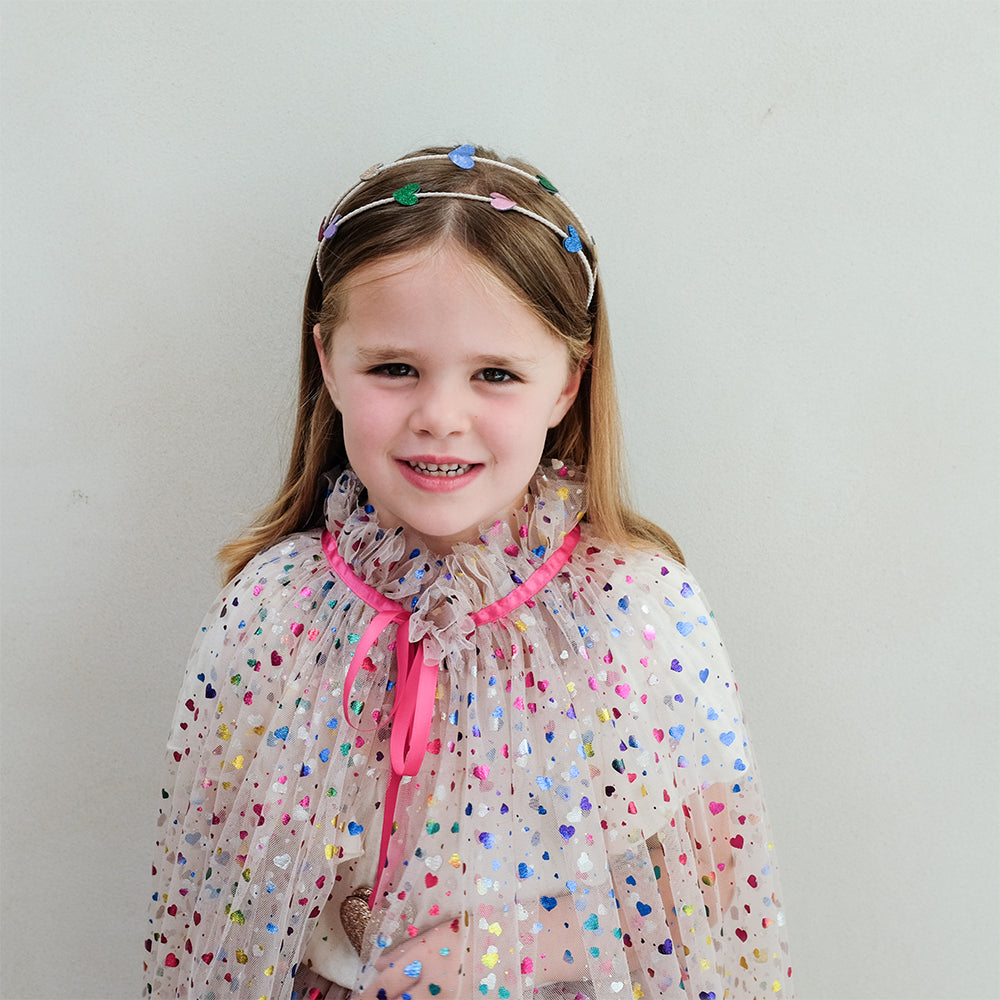 Mimi & Lula Rainbow Hearts Tütü ile büyülü bir dünyada dönmeye hazır olun! Yumuşak, nötr tonlardaki tül katmanları, çok renkli gökkuşağı metalik kalplerle süslenmiş ve her dönüşte ışığı yakalar. Yumuşak nötr tonlarda tül katmanları, çok renkli gökkuşağı metalik kalplerle süslenmiştir.