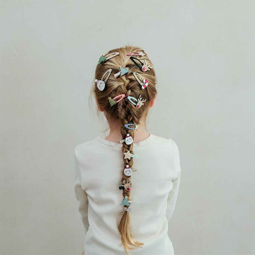Mimi & Lula Santa & Rudolph Mini 5'li Toka, Noel Baba ve onun sevimli yardımcısı Rudolf'u içeren harika bir mini toka seti sunar! Beş küçük ama etkili toka, enfes bir Noel renk paletiyle sezonun neşesini saçlara taşır.
