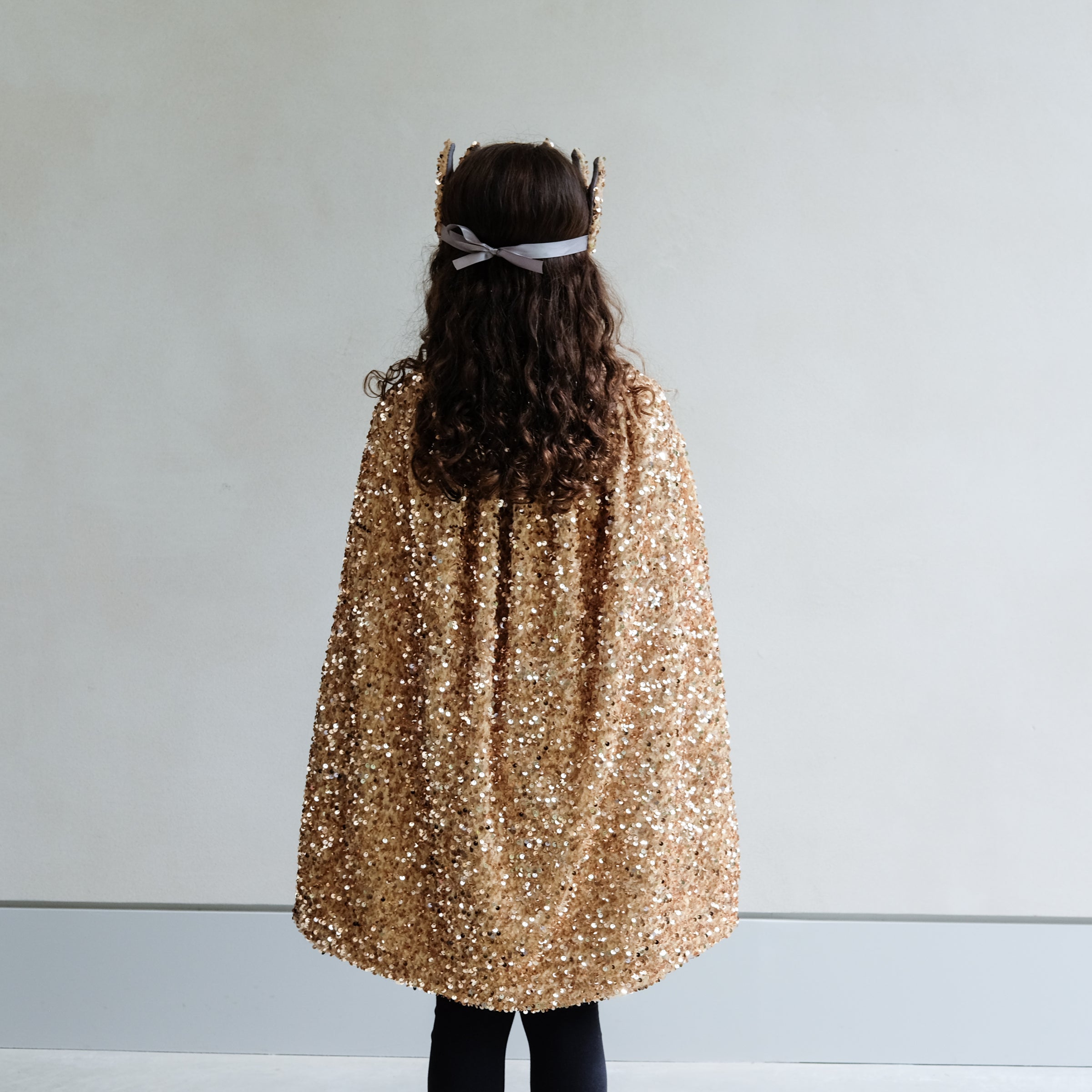 Mimi & Lula Sequin Pelerin, kişilikleri kadar parlak bir pelerin sunar! Işıltılı kostüm günleri, partiler veya sıradan günler için mükemmeldir. Gerçekten kraliyet tarzı için eşleşen payetli taç ile kombinleyebilirsiniz. Altın payetlerle süslenmiş kumaştan yapılmış, yumuşak gri saten astarlı pelerindir.