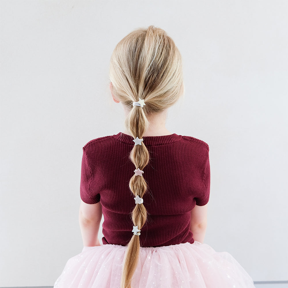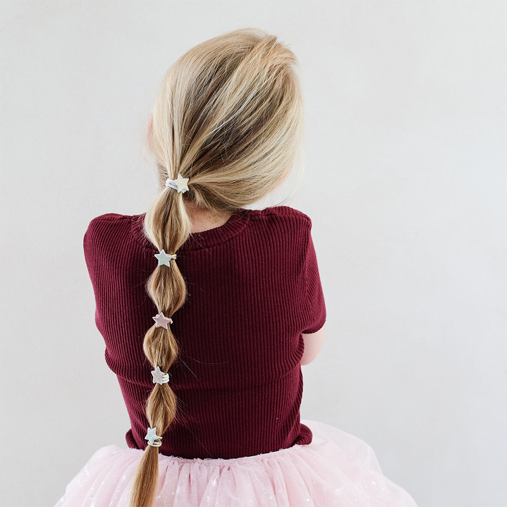 Mimi & Lula Sparkle Star 8’li Lastik Toka, katmanlı yıldız figürleriyle saçlara biraz sihir katıyor! Parıldayan simler ve metalik kumaşların büyülü karışımıyla süslenen bu lastik tokalar, tatil sezonu ve sonrası günleri aydınlatmak için idealdir.